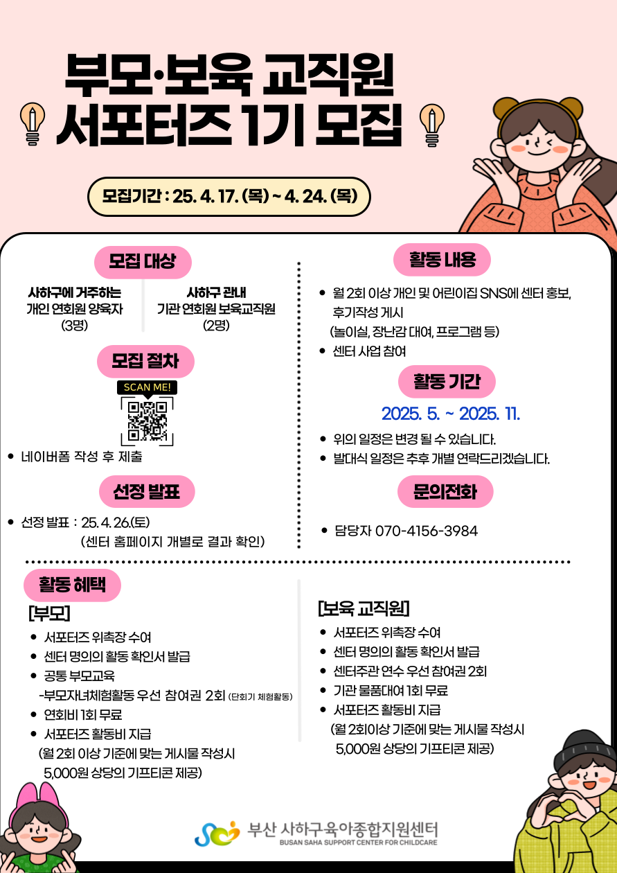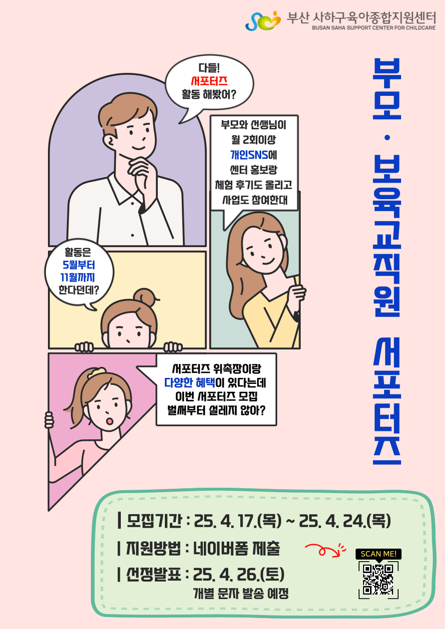 2025년 사하구육아종합지원센터 부모·보육교직원 서포터즈1기 모집