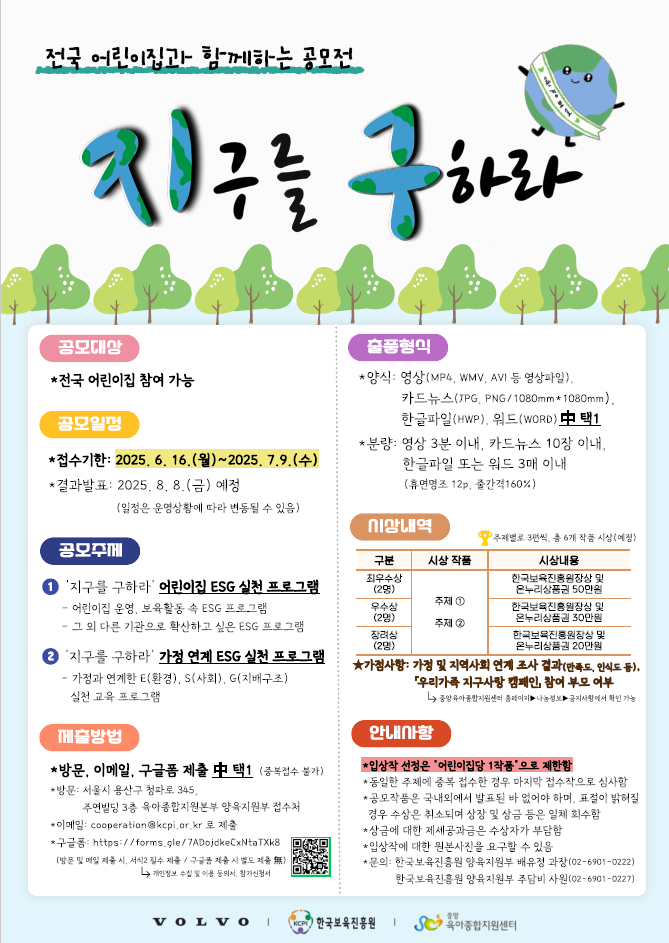 [한국보육진흥원]2025 전국 어린이집과 함께하는 '지구를 구하라' 공모전 안내