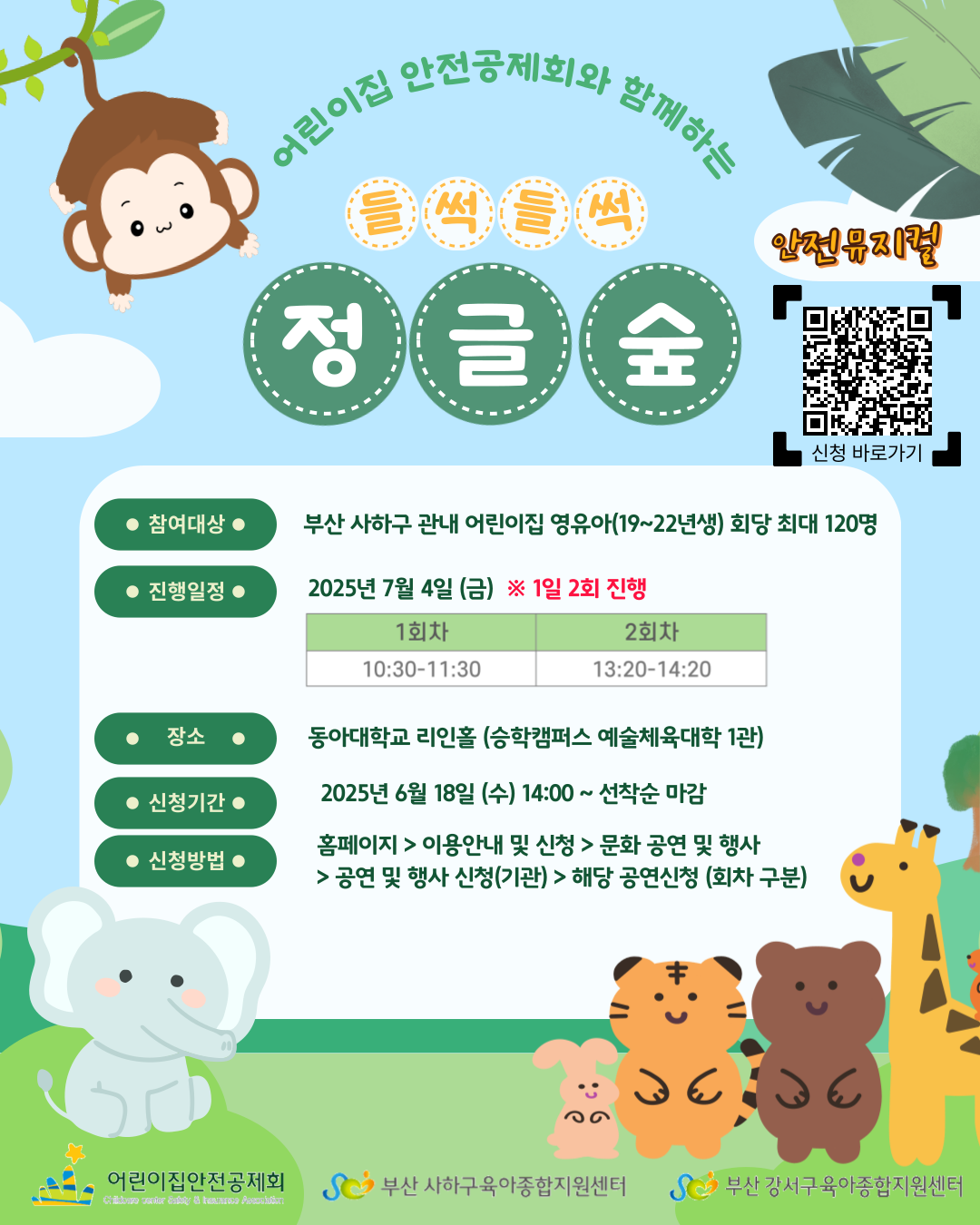 어린이집 안정공제회와 함께하는 들썩들썩 정글숲 안전 뮤지컬 일정을 안내 드립니다.