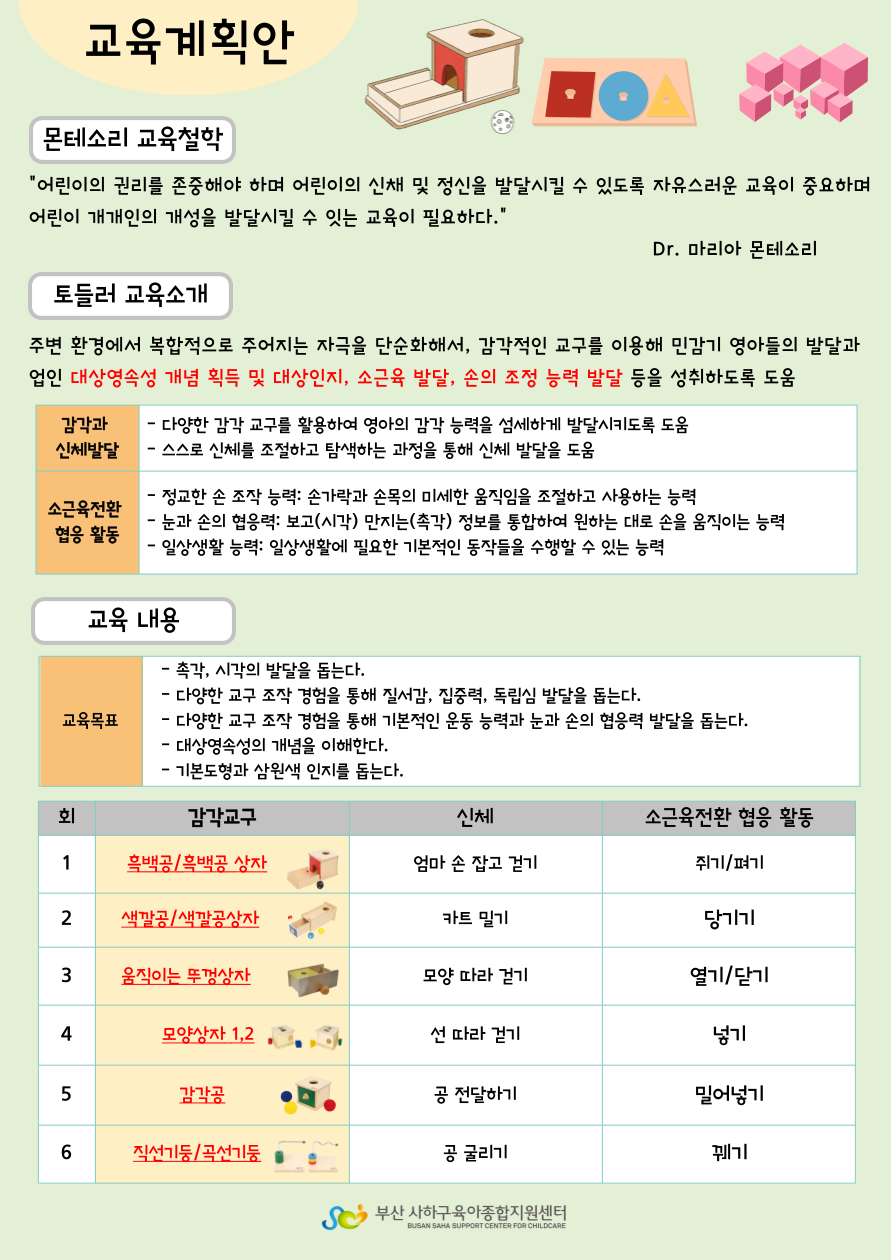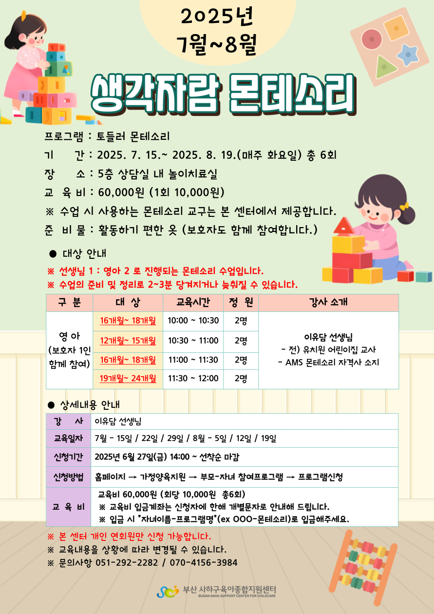 [사하구육아종합지원센터] 여름학기 몬테소리 수업 안내