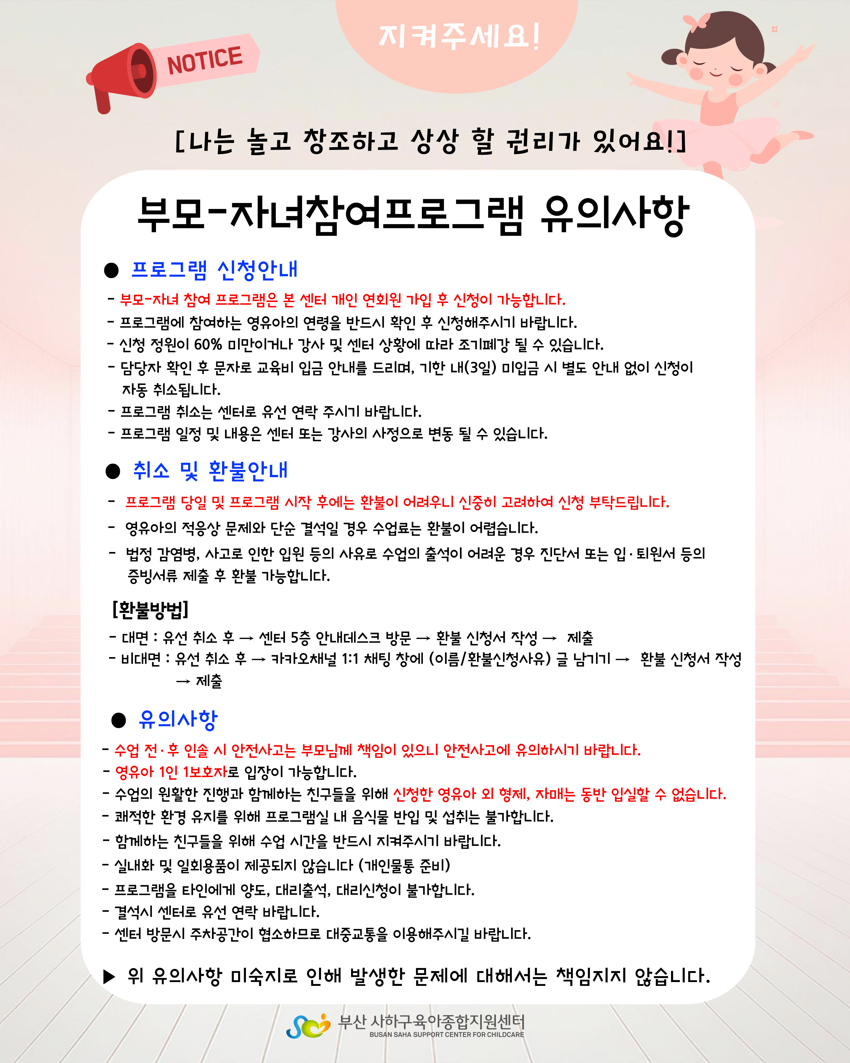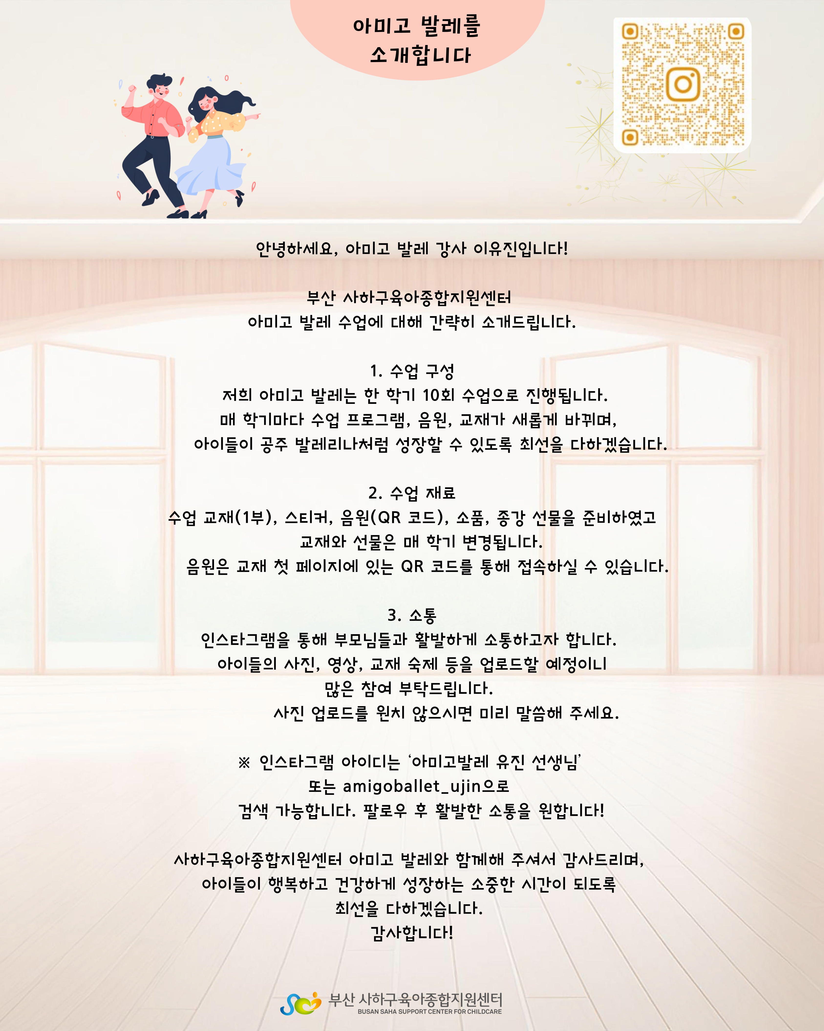 [사하구육아종합지원센터] 2025년 가을학기 - 몸자람 발레놀이 신청 안내