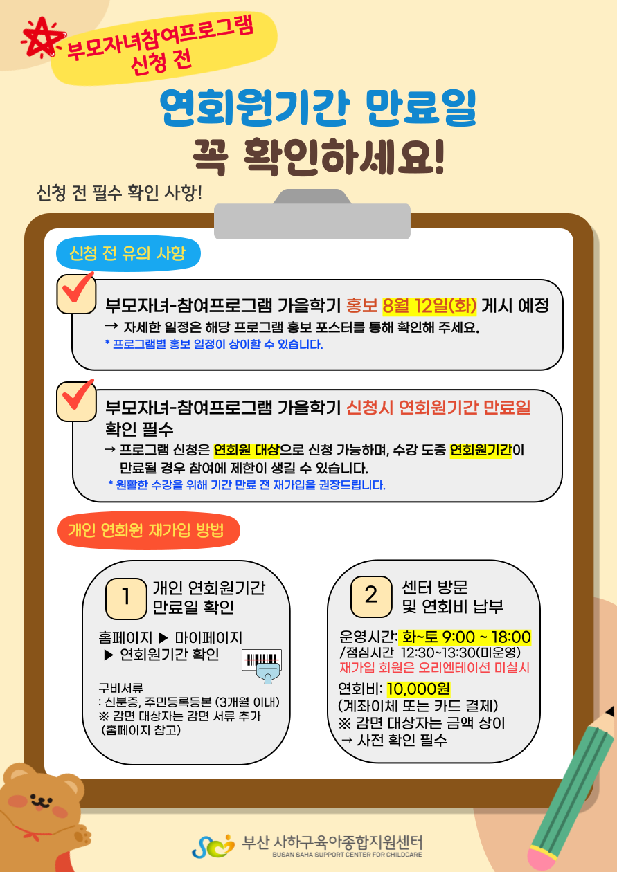 확인 방법: 센터 홈페이지 > 마이페이지 > 연회원기간 확인