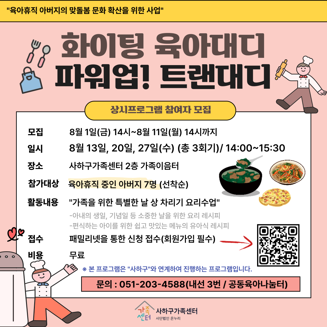 사하구 가족센터에서 요리도 배우고, 육아도 공유해요!