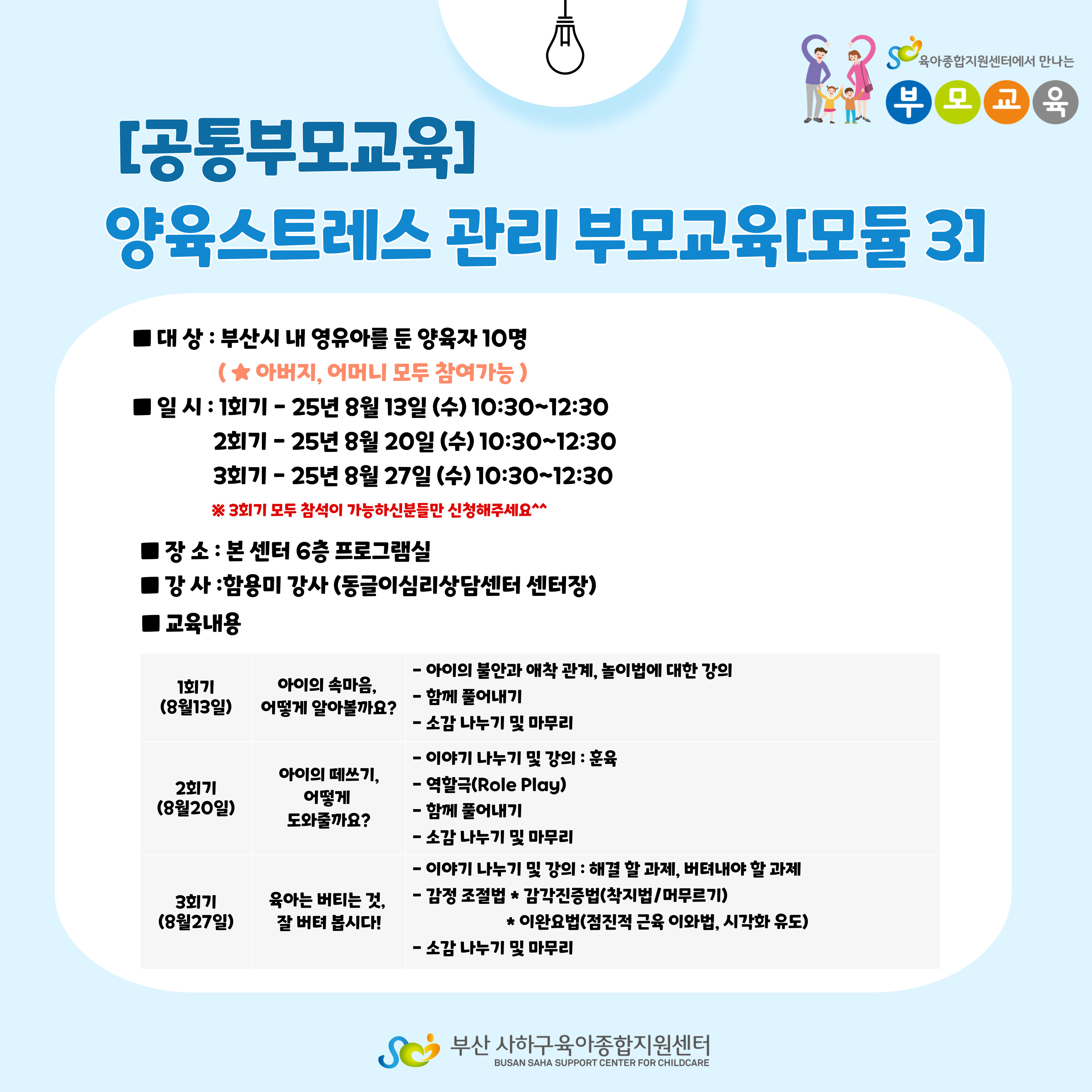 [사하구육아종합지원센터] 양육스트레스 모듈 3-알수록 쉬워지는 육아