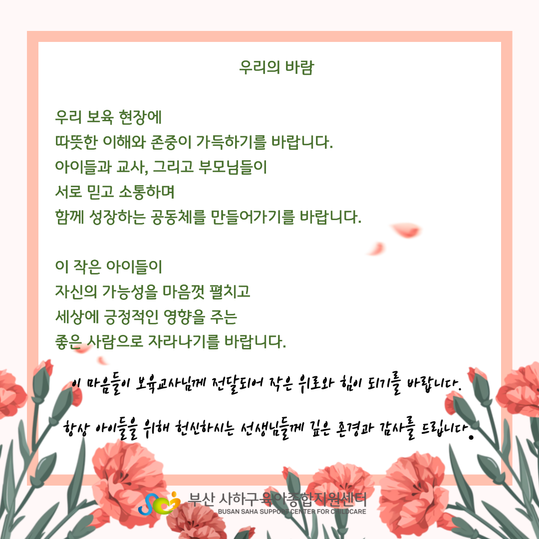 항상 아이들을 위해 헌신하시는 선생님들께 깊은 존경과 감사를 드립니다.