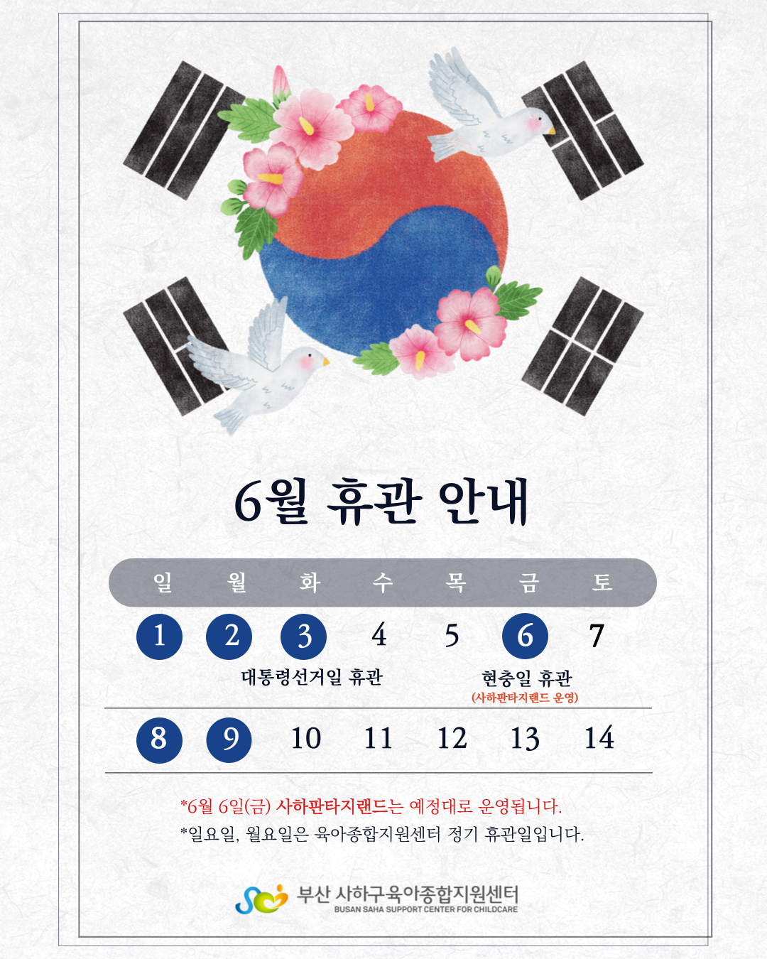 사하구육아종합지원센터 6월 휴무 안내