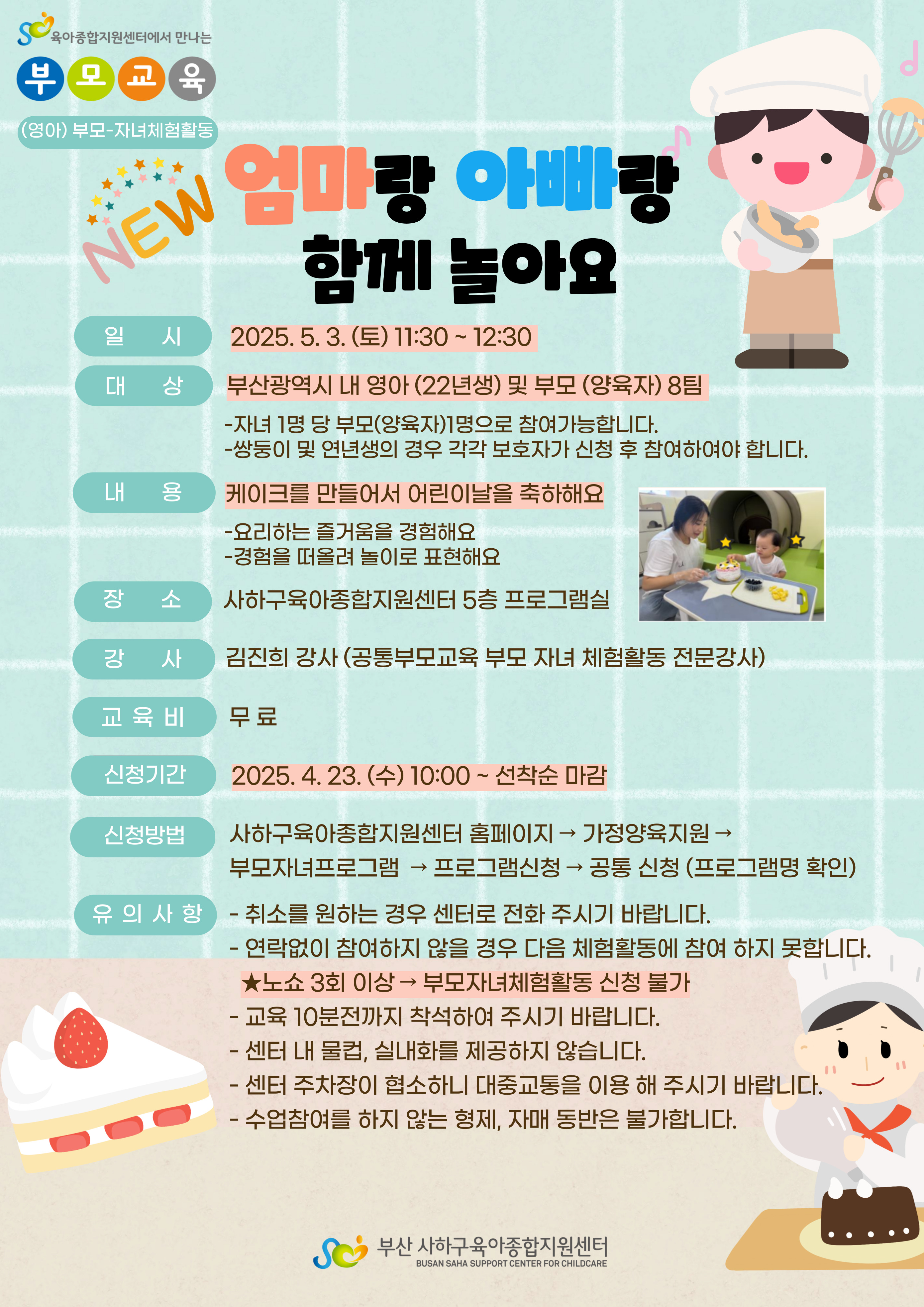 [사하구육아종합지원센터] - [공통 - 유아 19년-21년생] 엄마랑 아빠랑 함께 놀아요!