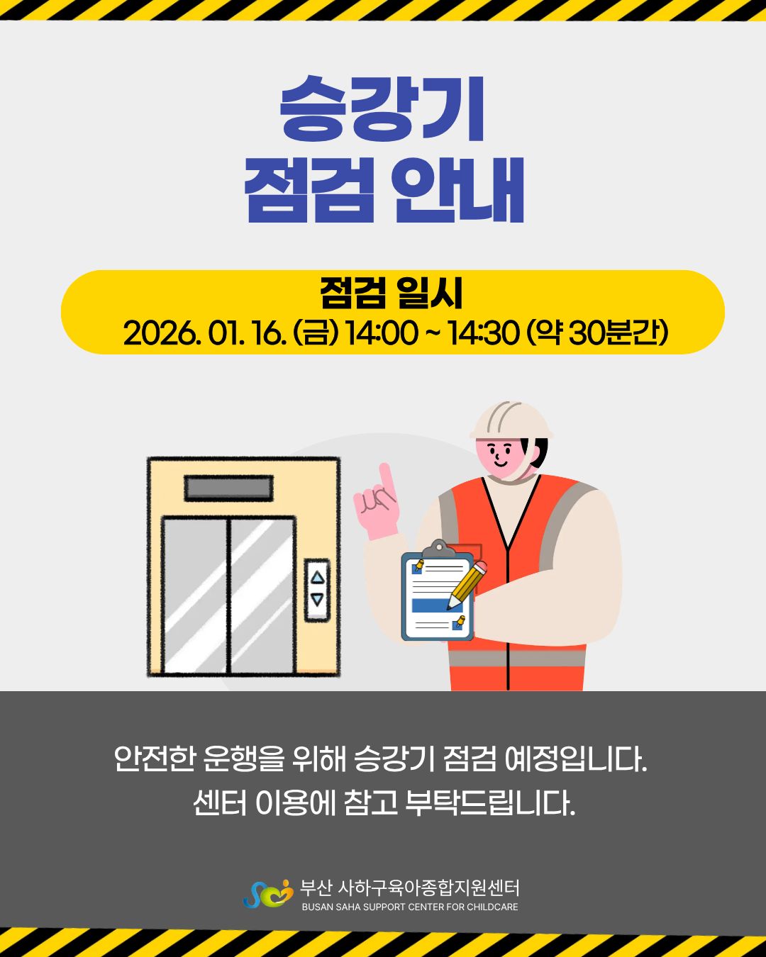 [사하구육아종합지원센터] 승강기 점검 안내 (26. 1. 16. 14시)