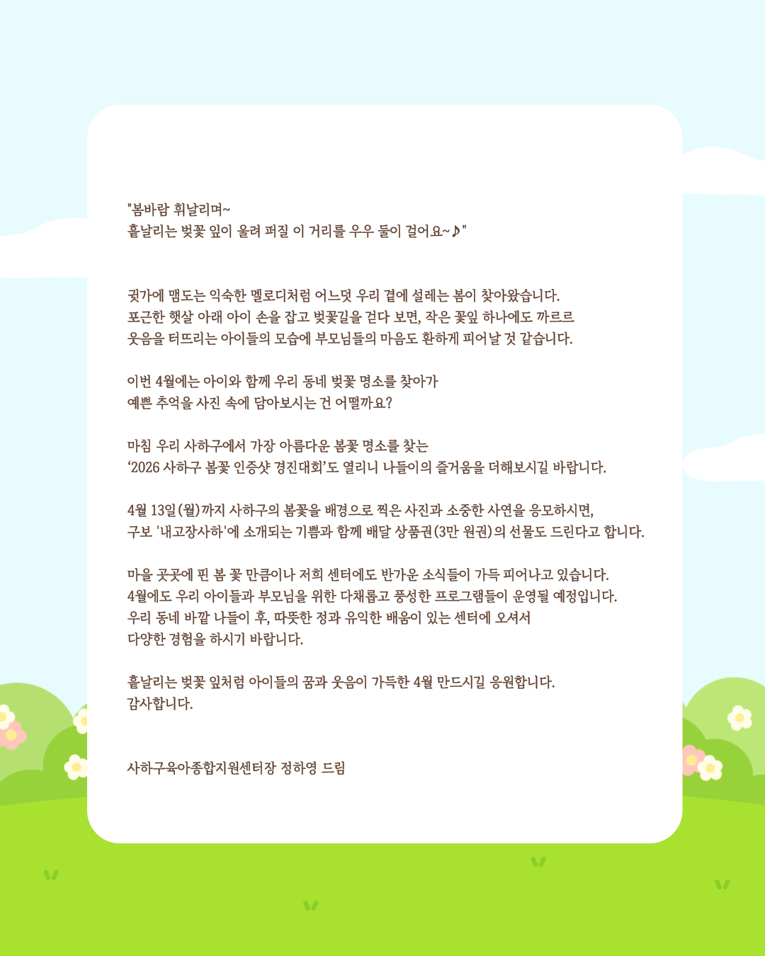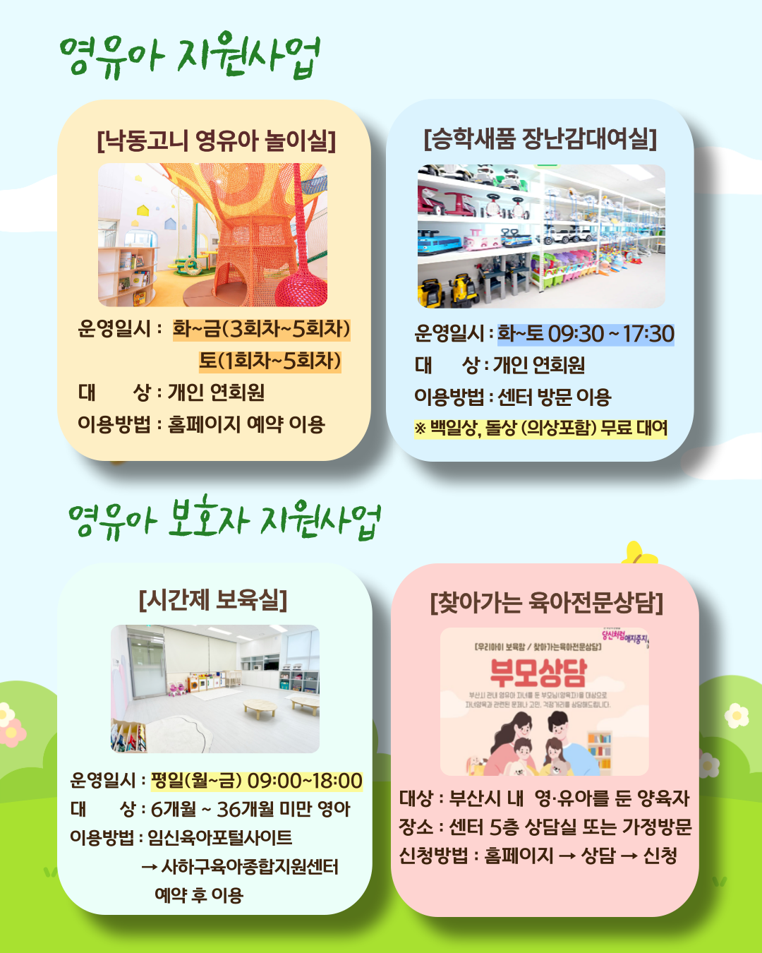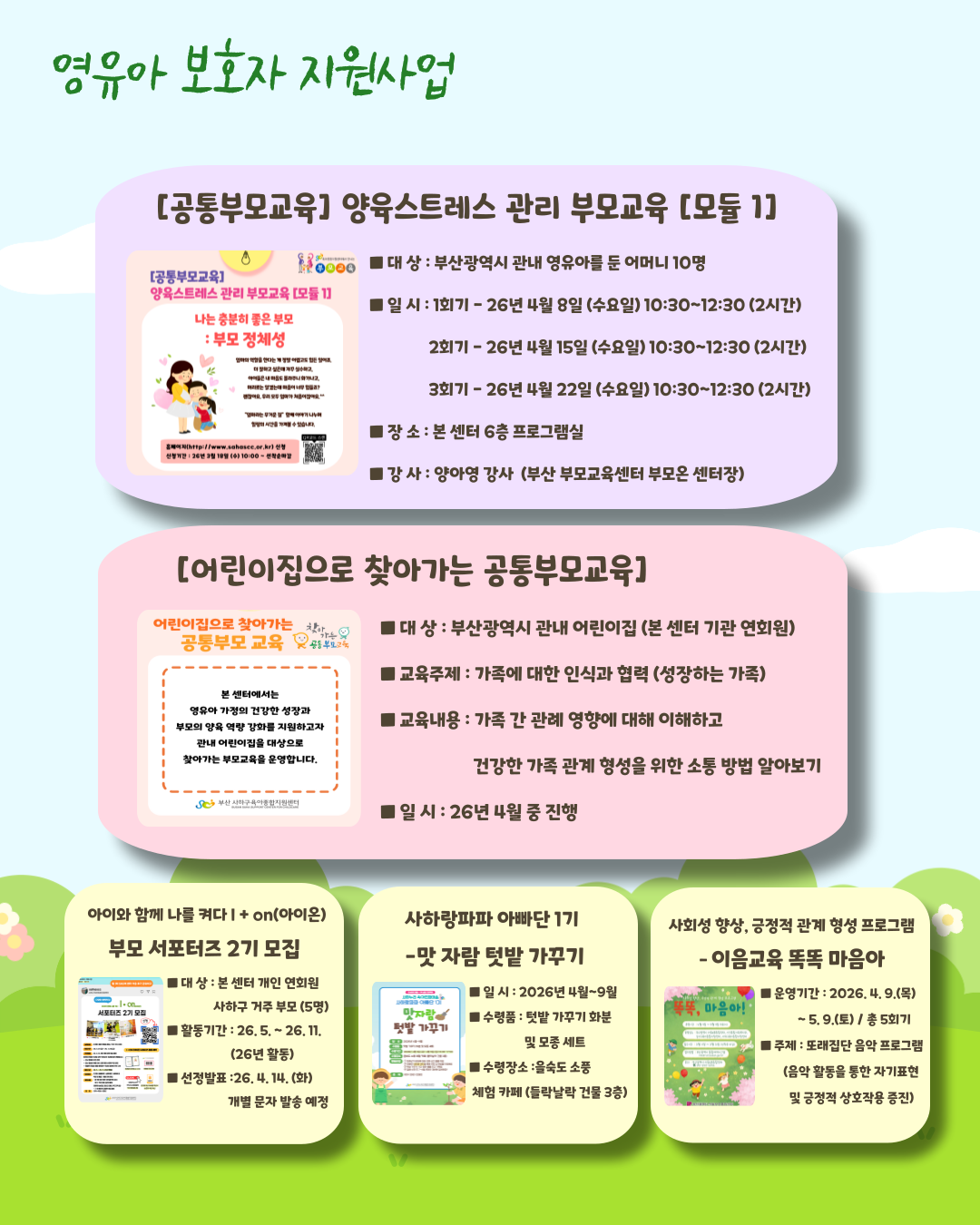 아이와 함께 웃음이 자라는 4월, 사하구육아종합지원센터가 늘 곁에 함께하겠습니다.