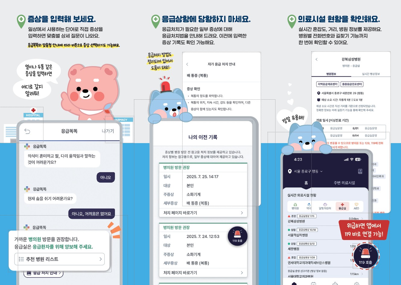 추석연휴에 여는 병·의원, 약국, 달빛어린이병원 등 정보 확인과 365일 24시간 소아응급 의료진을 통한 온라인 상담을 알수 있는 앱입니다.