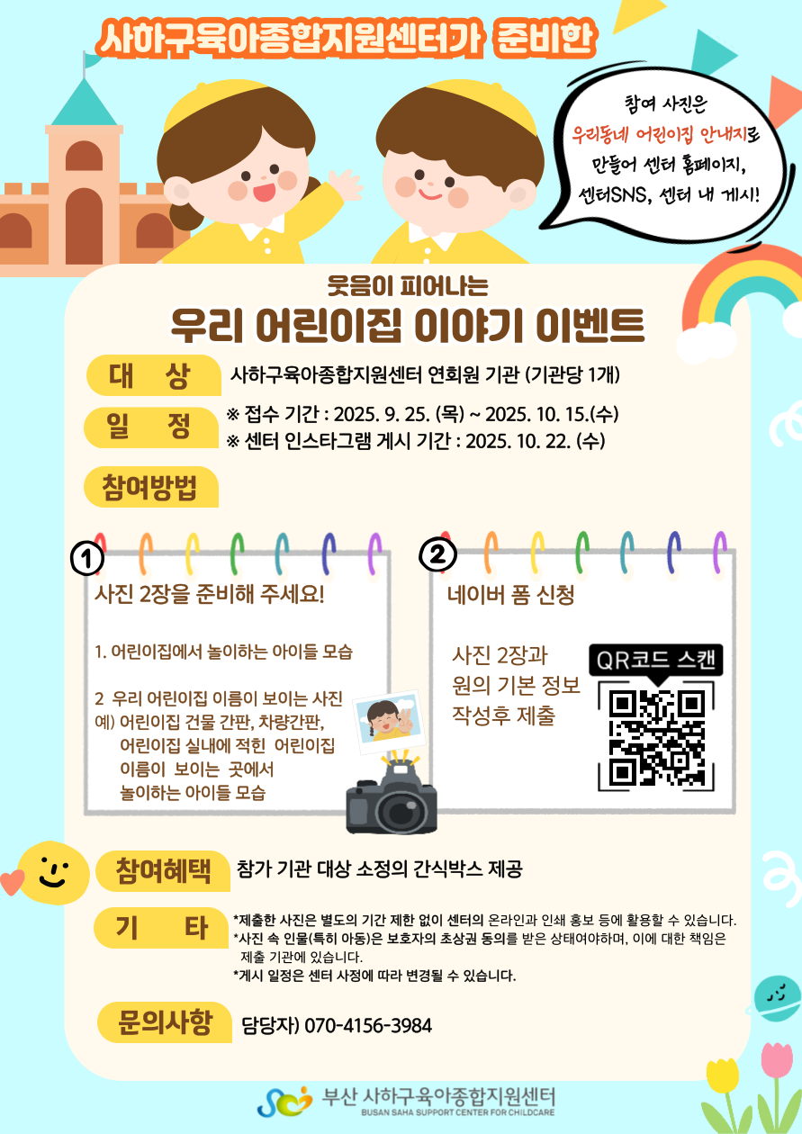 [사하구육아종합지원센터] 웃음이 피어나는 우리어린이집 이야기 이벤트 안내