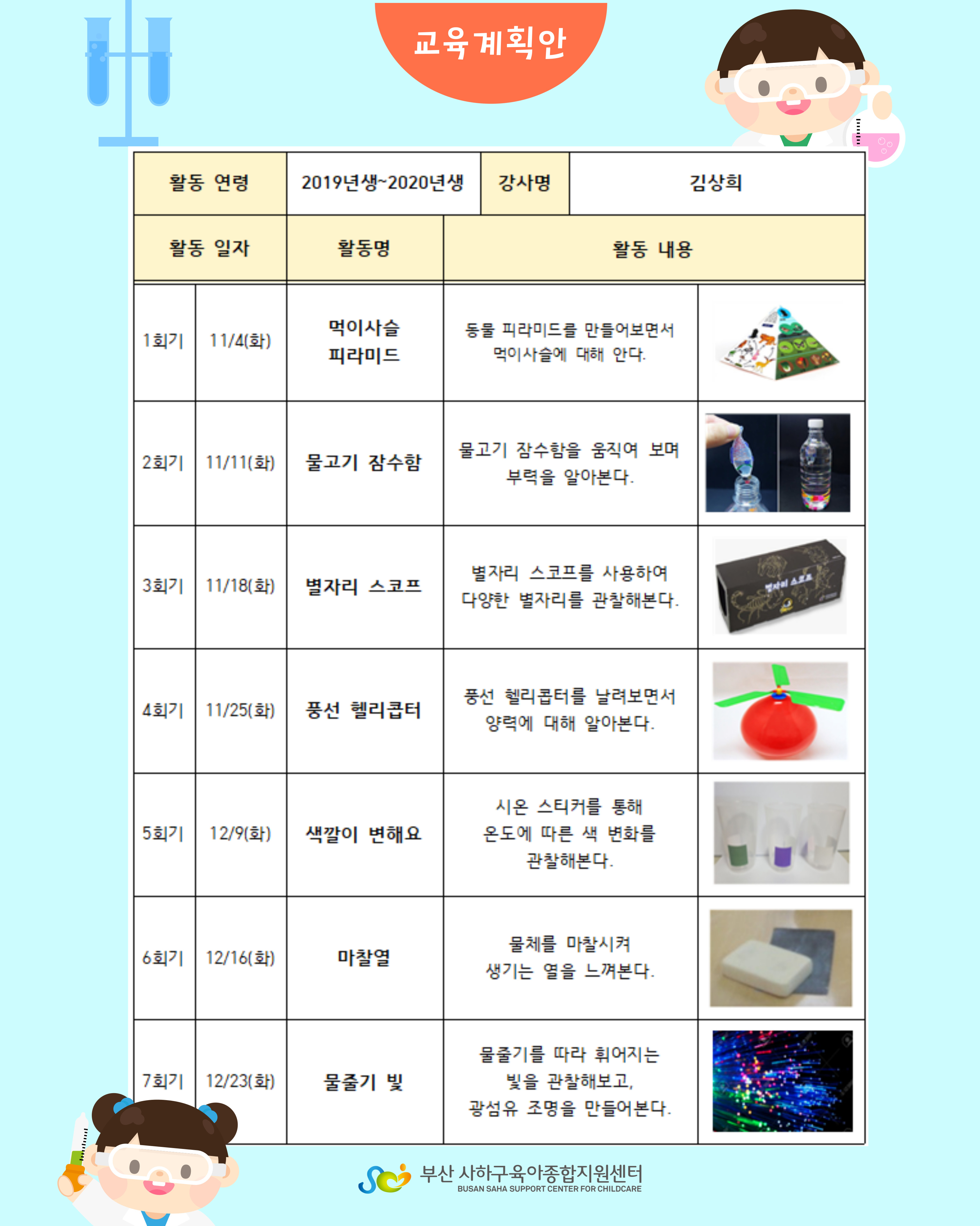 [사하구육아종합지원센터] 2025년 겨울학기 - 키즈랩 과학실험실 신청 안내