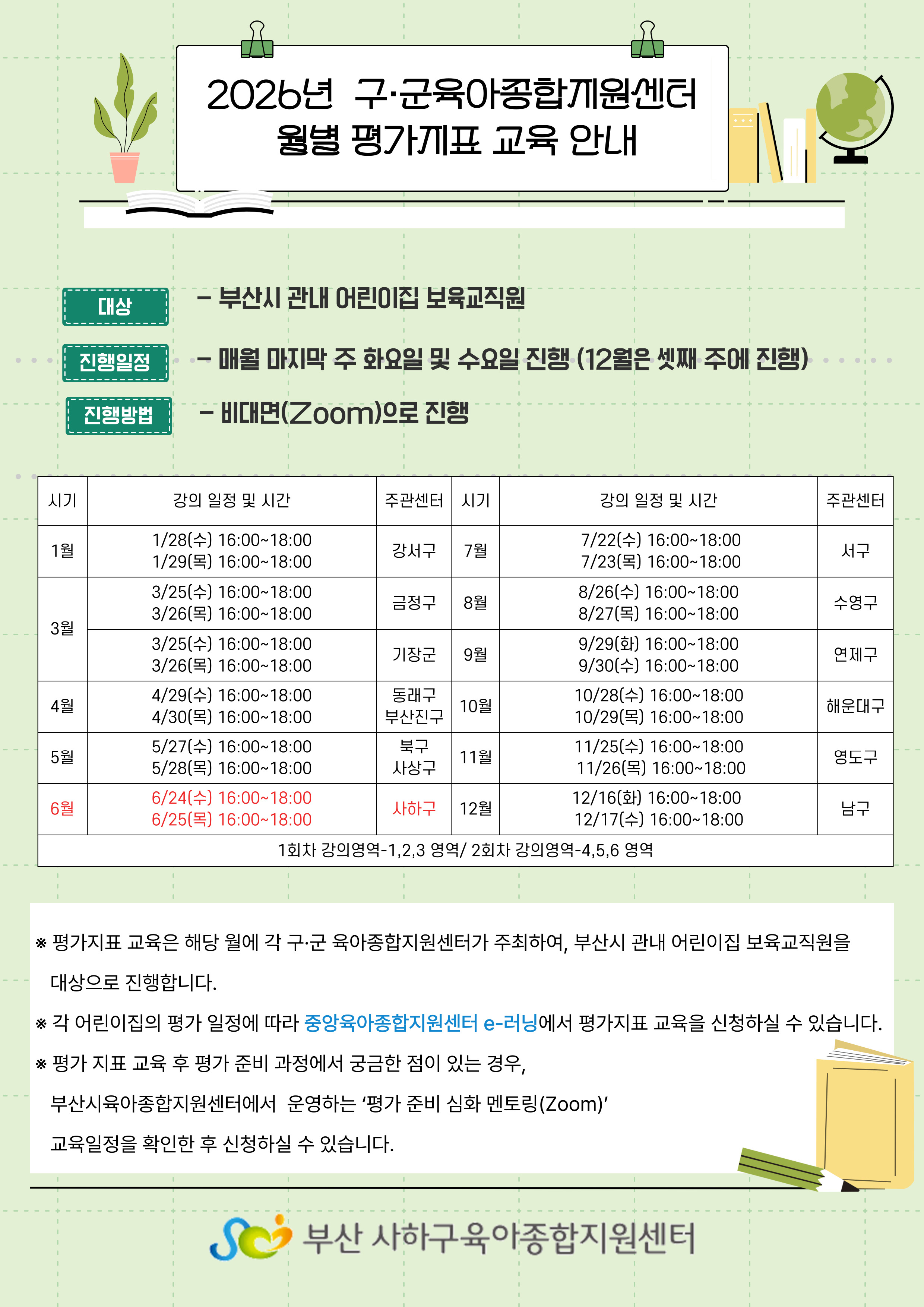 [사하구육아종합지원센터] 2026년 부산시 구·군 육아종합지원센터 월별 평가지표 교육 안내