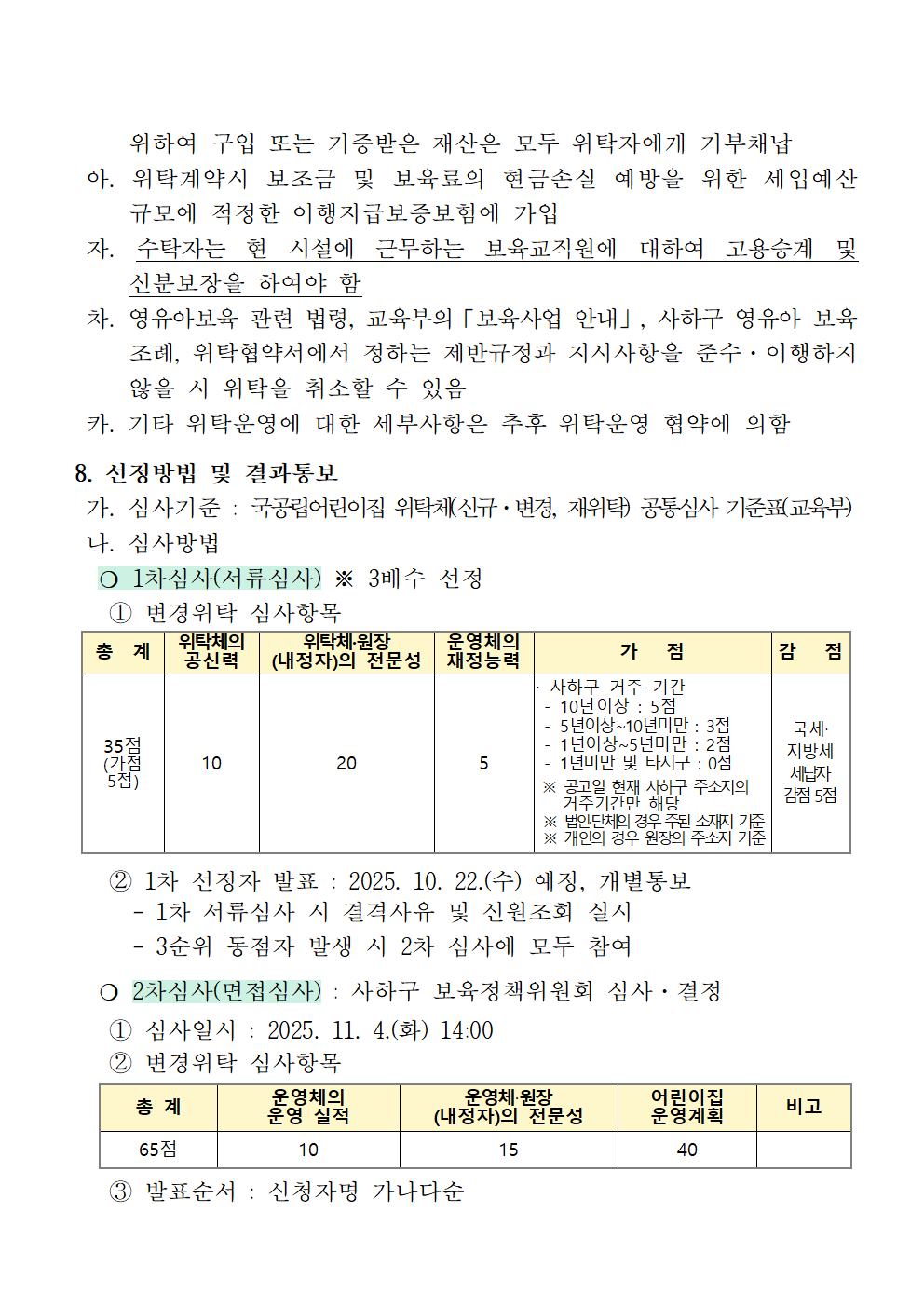 「영유아보육법」제24조제2항 및 같은 법 시행규칙 제24조,「부산광역시 사하구 영유아 보육 조례」제14조에 따라