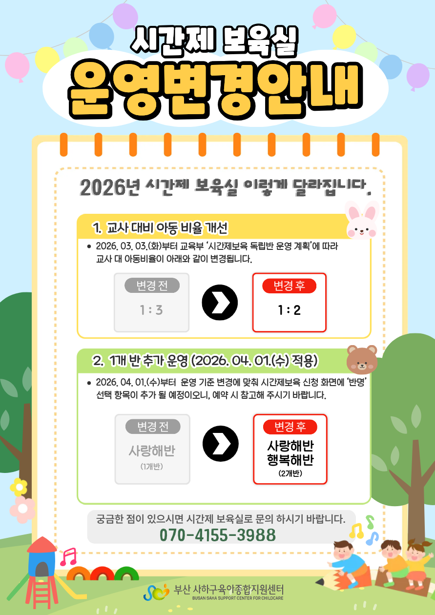 교사 대 아동 비율이 1:3 → 1:2로 변경되어