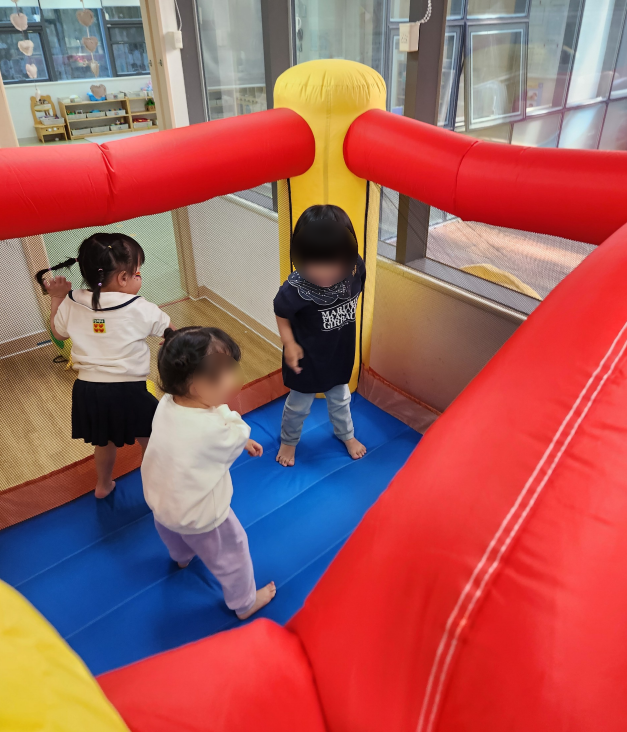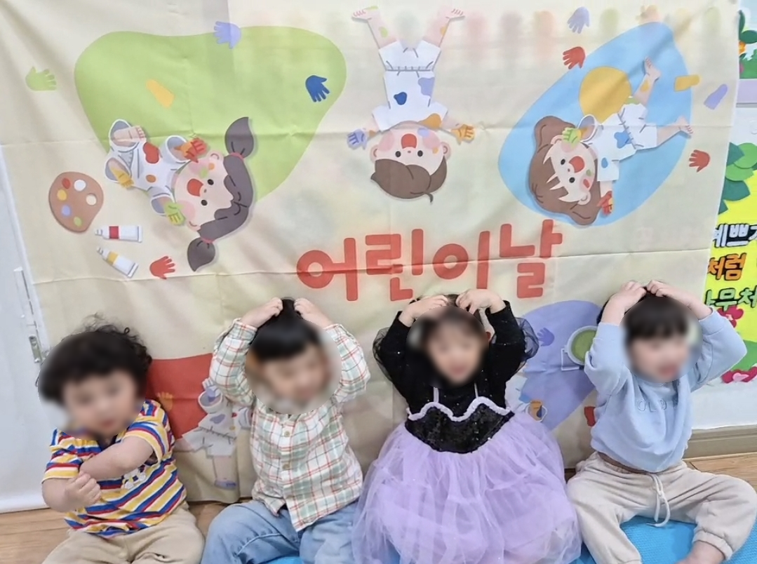어린이집에서도 신나게 놀이하고, 현수막, 솜사탕 기계 등