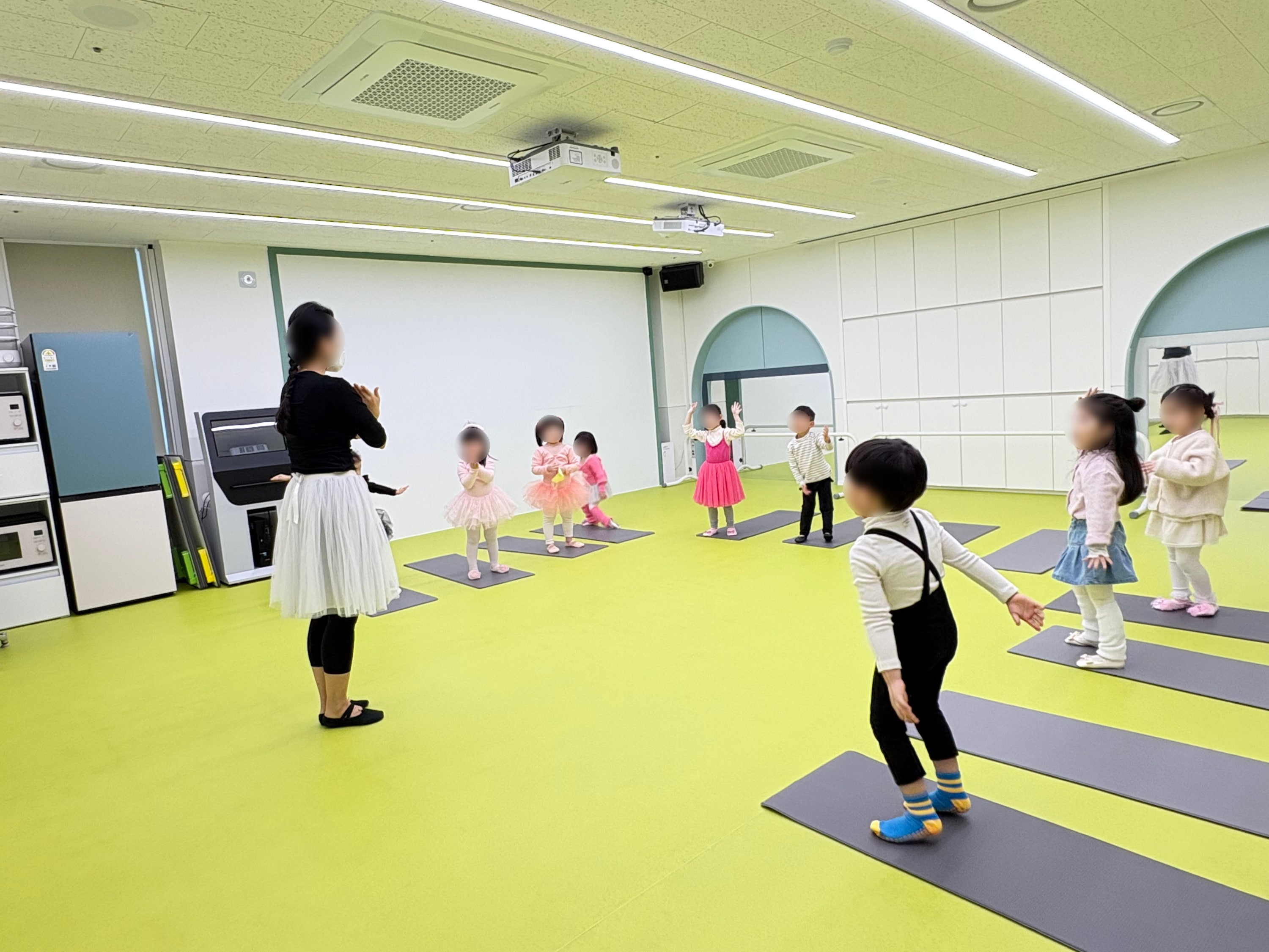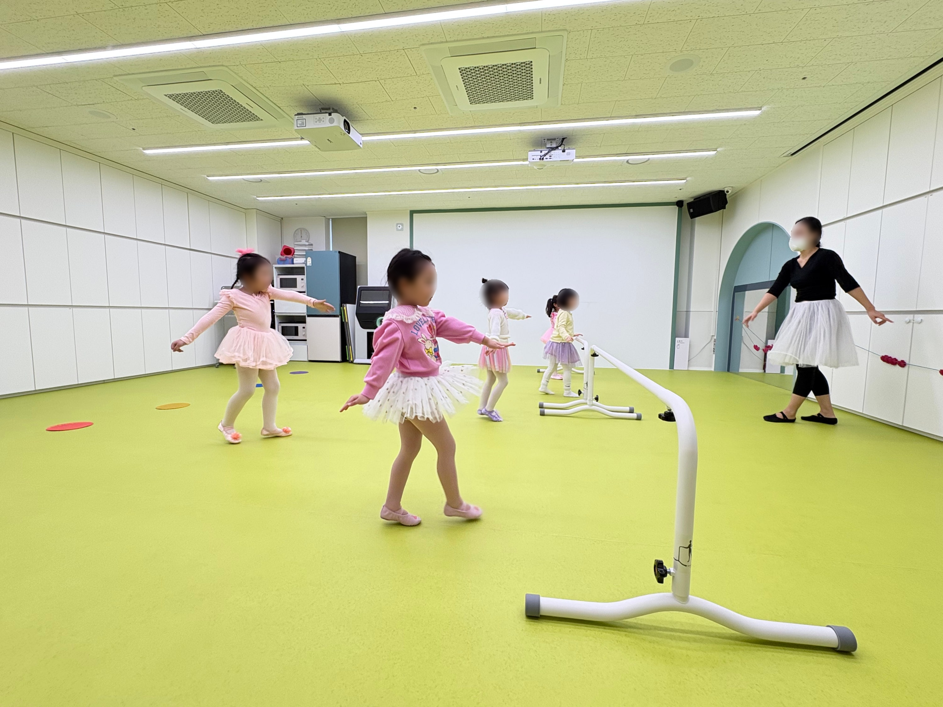아이들은 음악에 맞춰 몸을 움직이며 기초 발레 동작을 익히고,
