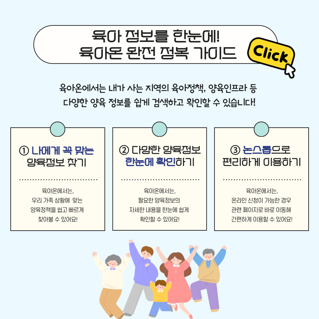 우리지역 육아정책, 양육정보, 인프라까지 한눈에!
