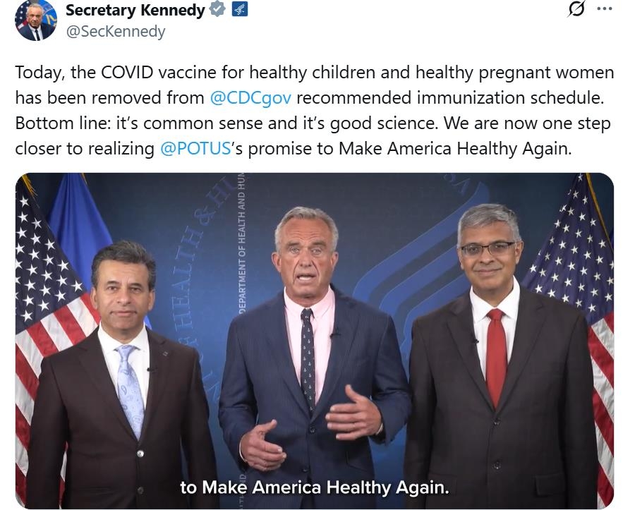링크 : 美보건장관 "코로나백신, 건강한 아동·임산부엔 접종권고 중단"