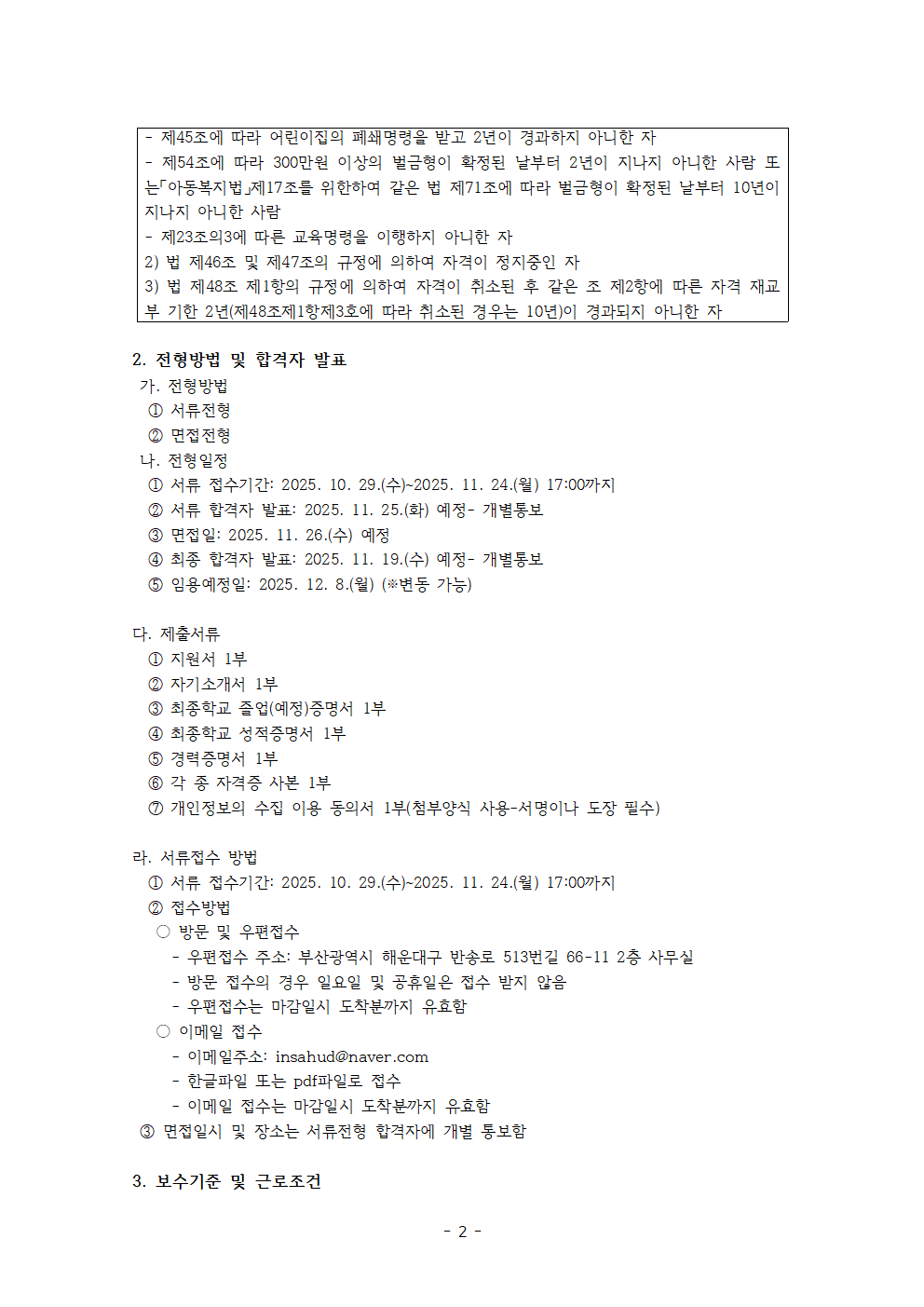 [사하구육아종합지원센터] 직원(보육전문요원, 시간제보육교사) 채용 공고문