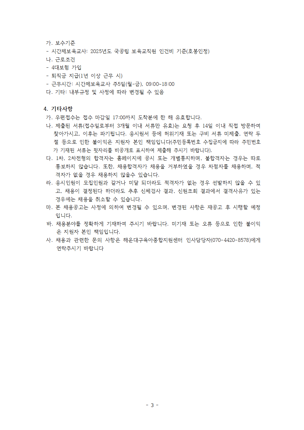 해운대구육아종합지원센터 시간제보육교사 채용 재공고