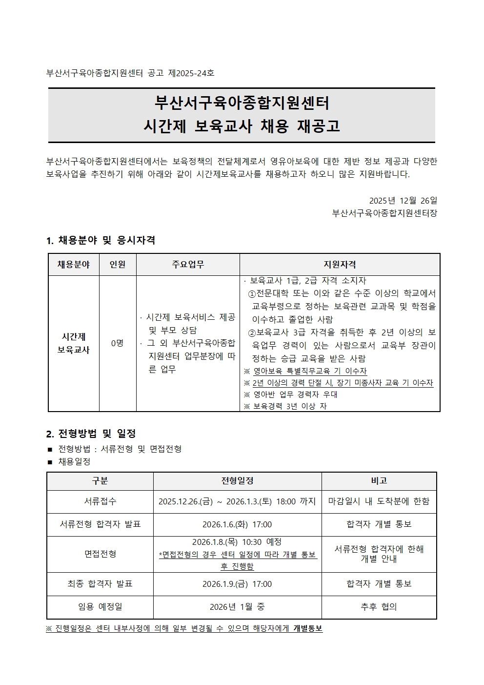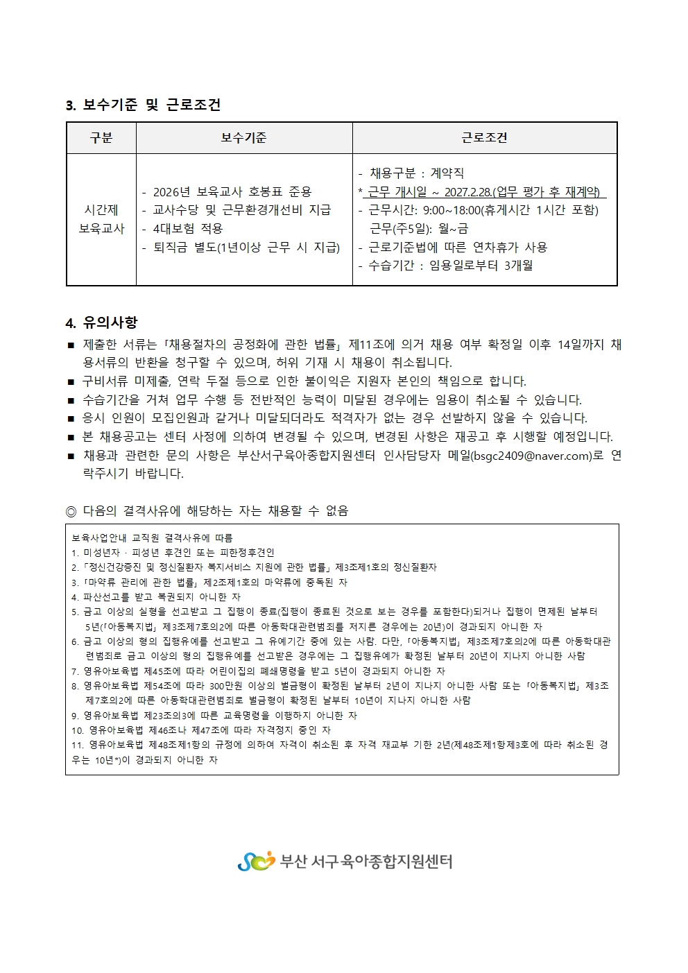 붙임1.부산서구육아종합지원센터 시간제보육교사 채용 재공고.hwp
