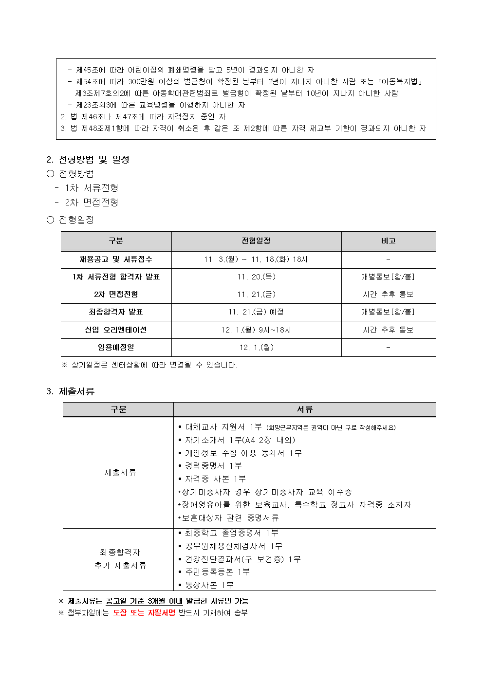 [부산광역시육아종합지원센터] 2025년 대체교사 인력 채용 공고