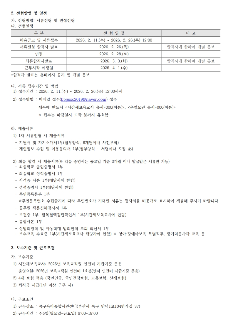 [부산진구육아종합지원센터] 직원(시간제보육교사) 채용 공고