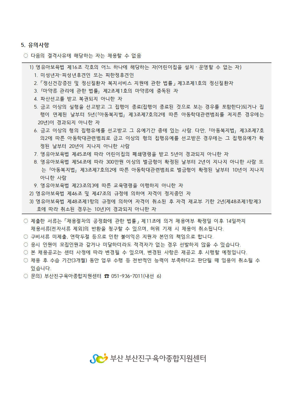 [부산진구육아종합지원센터] 직원 채용 공고