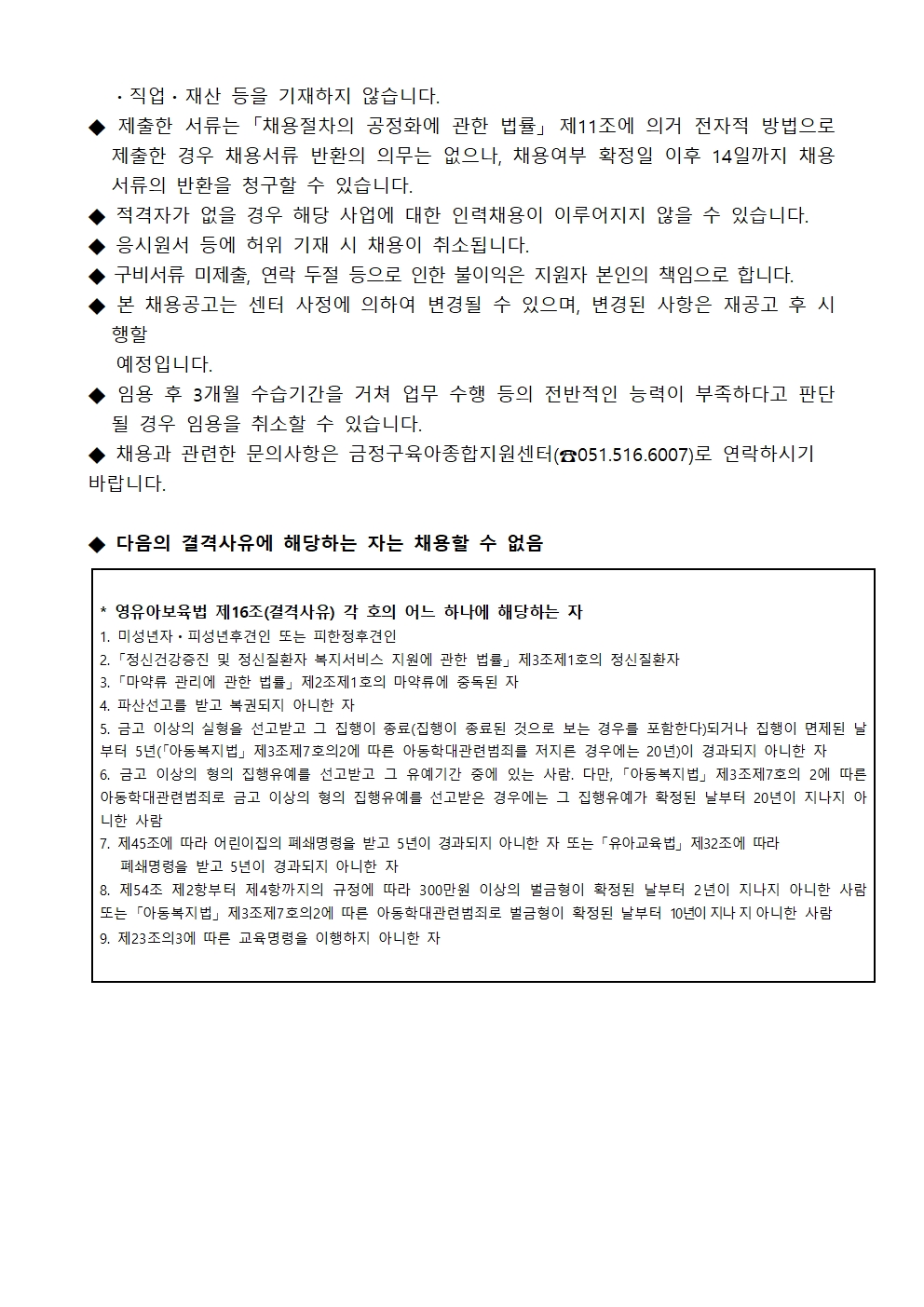 [금정구육아종합지원센터] - [운영요원(육아휴직 대체) 채용 공고]