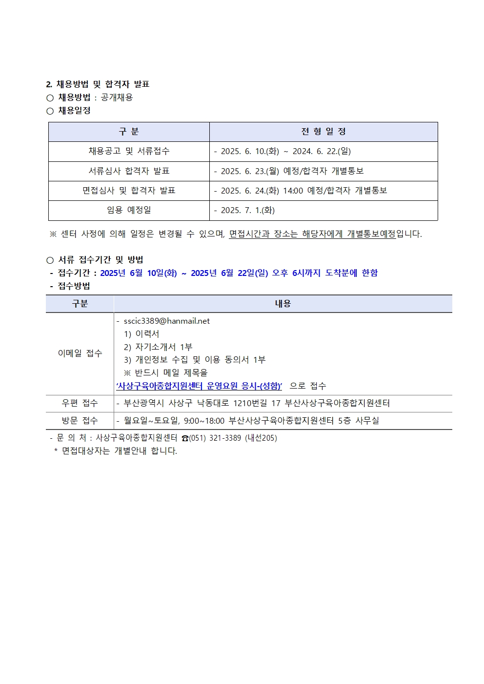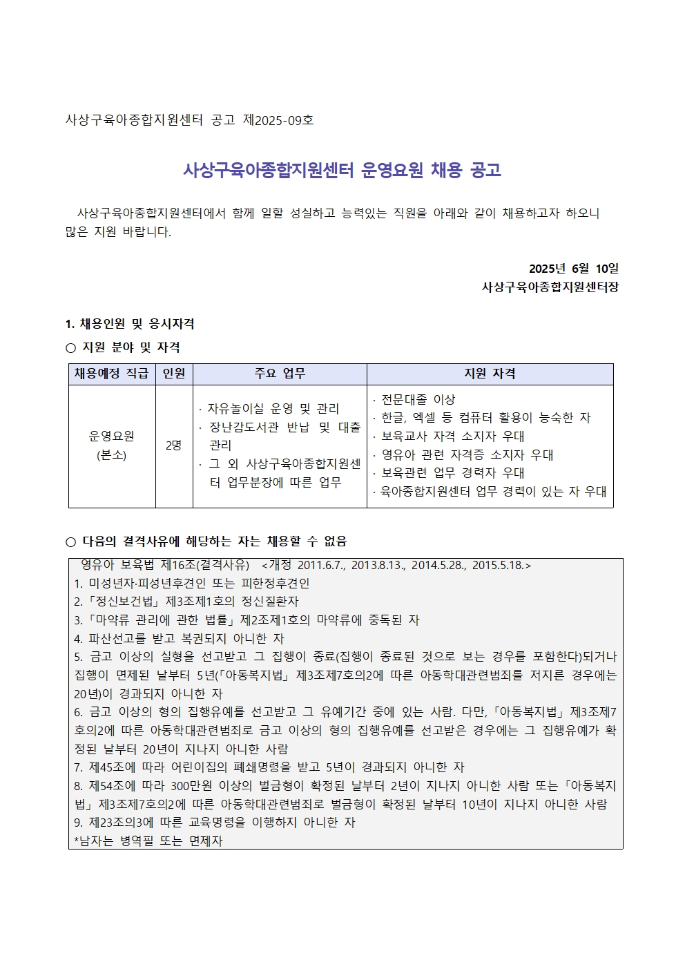 [사상구육아종합지원센터] - [운영요원 채용 공고]