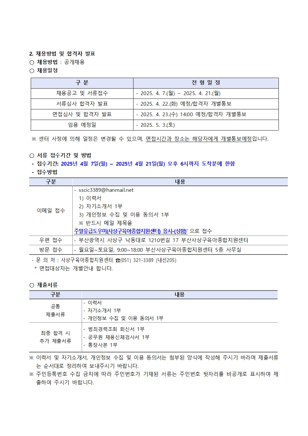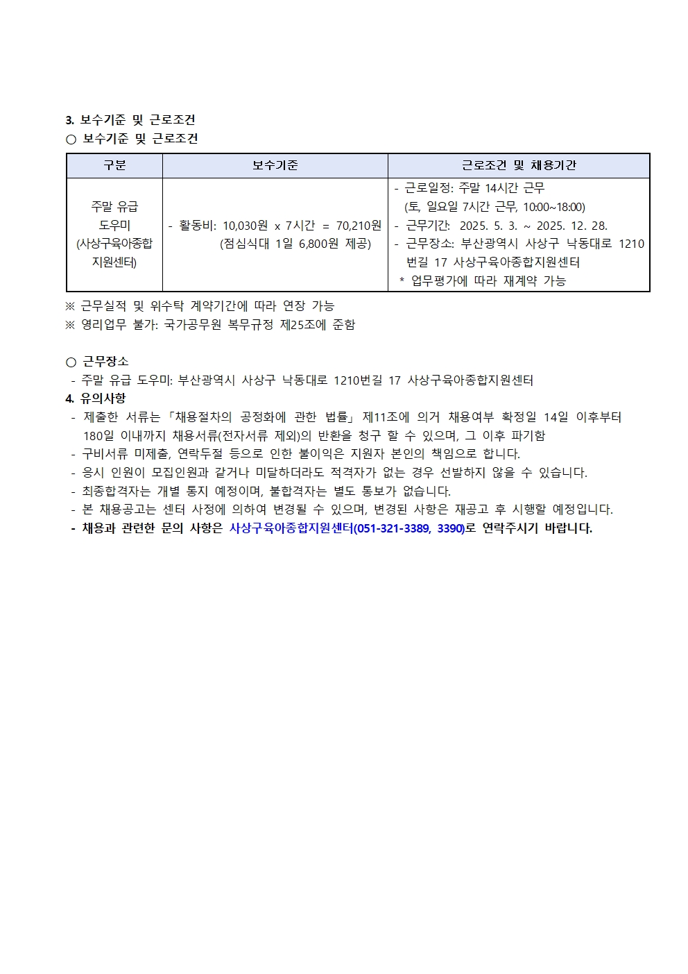 [사상구육아종합지원센터] - [주말유급도우미 채용 공고]