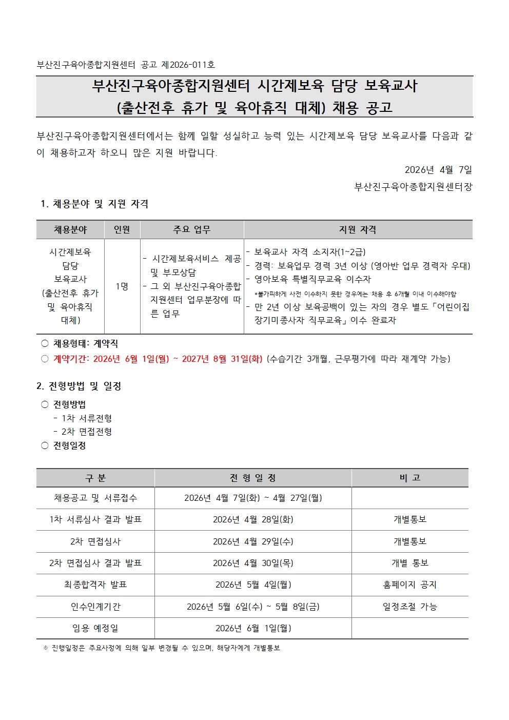 부산진구육아종합지원센터 시간제보육 담당 보육교사 채용 공고.zip