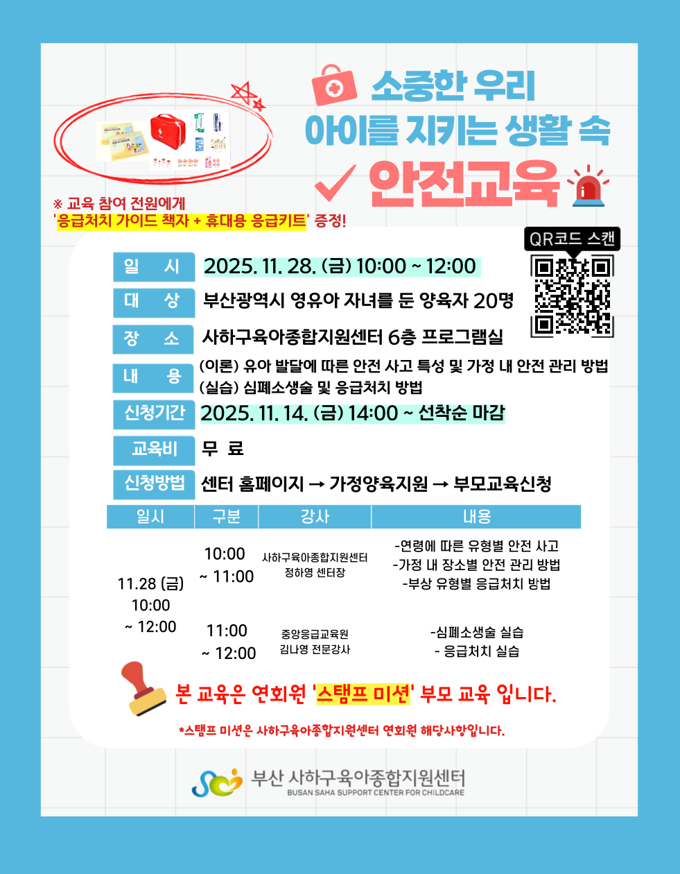 [사하구육아종합지원센터]소중한 우리 아이 지키는 생활속 안전교육 신청 안내