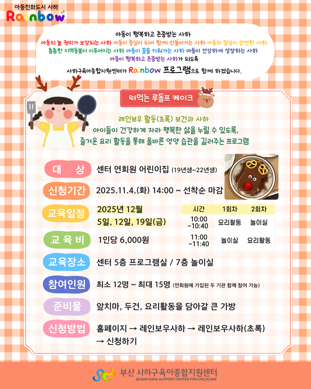 신청방법 : 홈페이지 → 레인보우사하(초록) → 신청하기