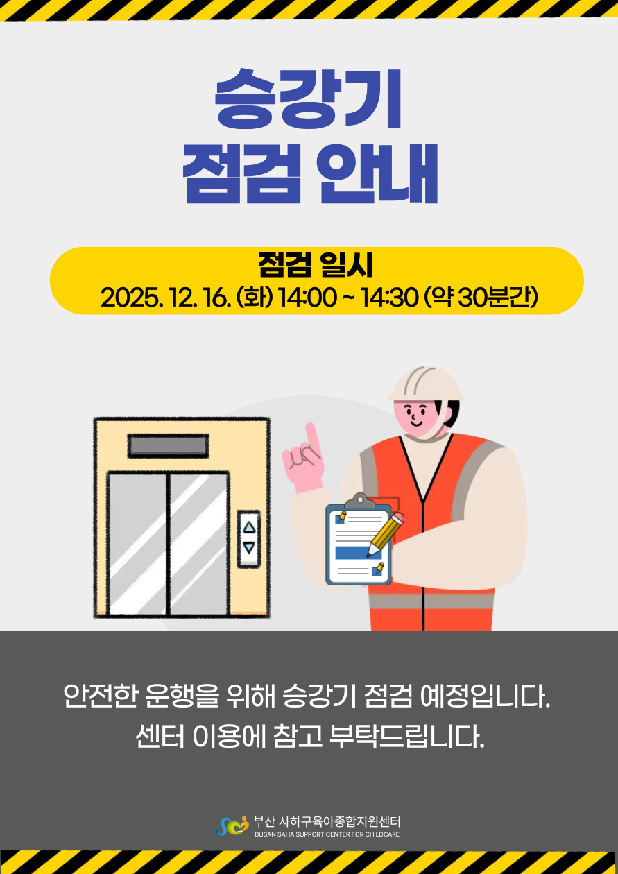 [사하구육아종합지원센터]승강기 점검 안내 (25. 12. 16. 14시)