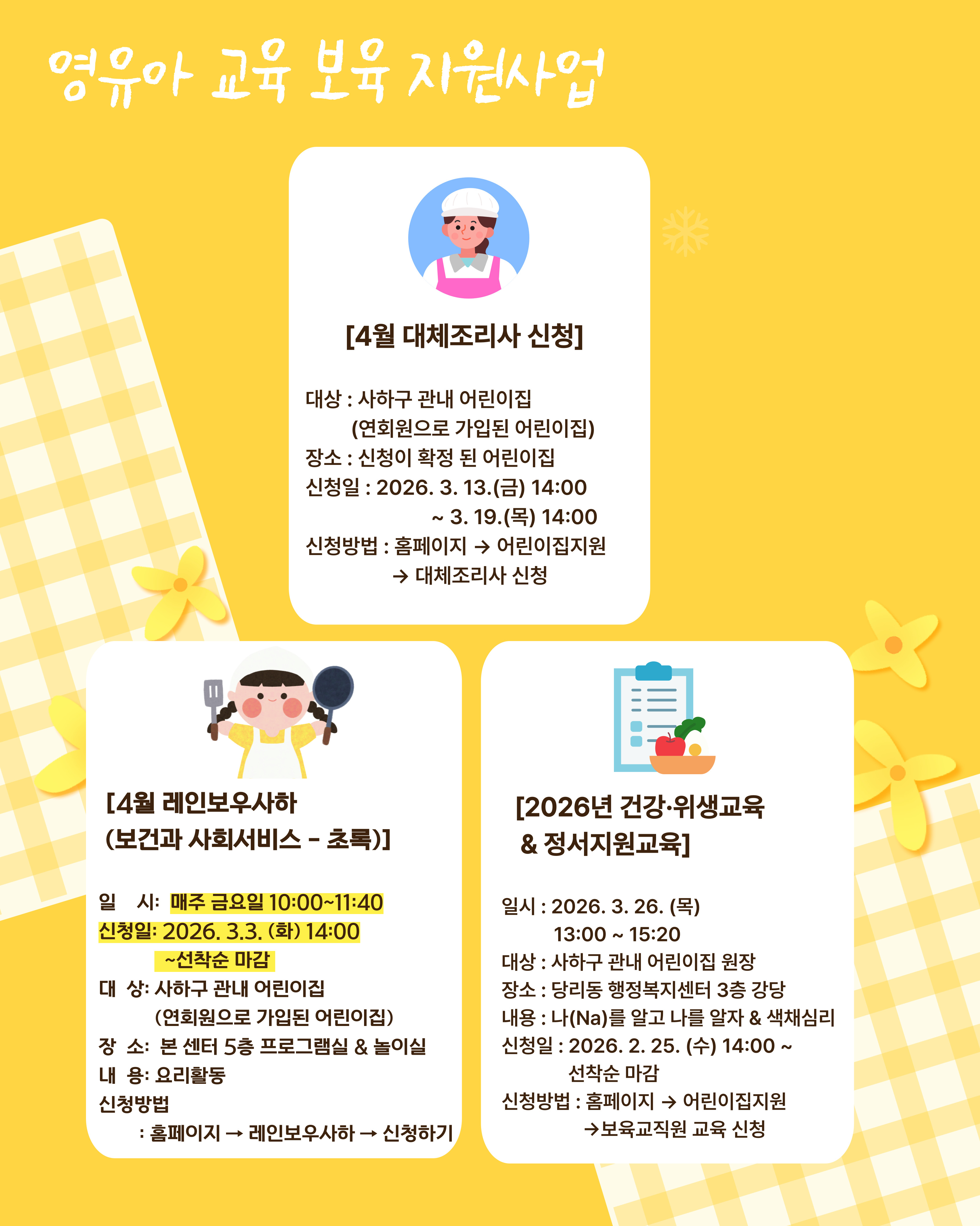 [사하구육아종합지원센터] 26년 2분기 (4~6월) - 부모-자녀 참여 프로그램 신청 안내