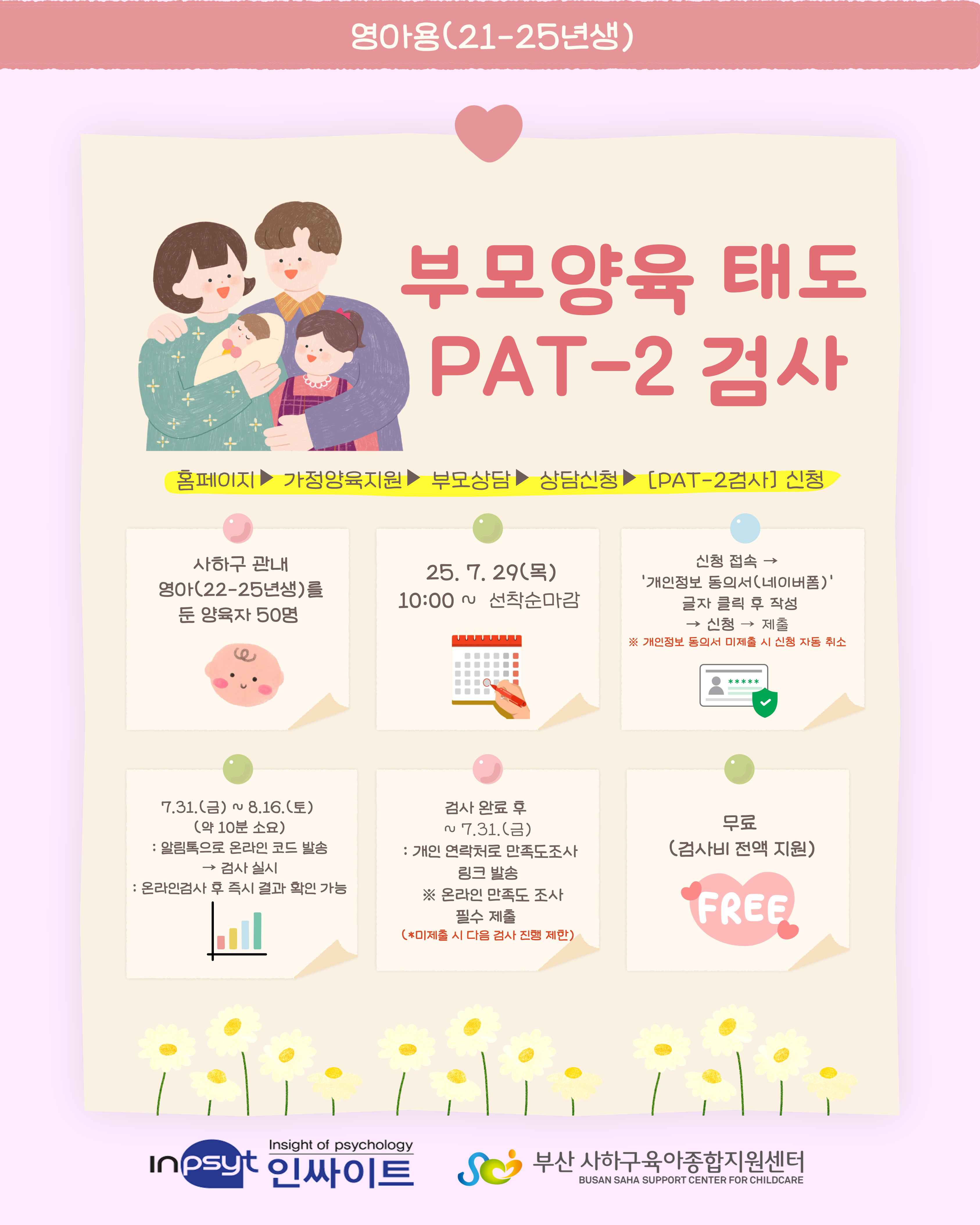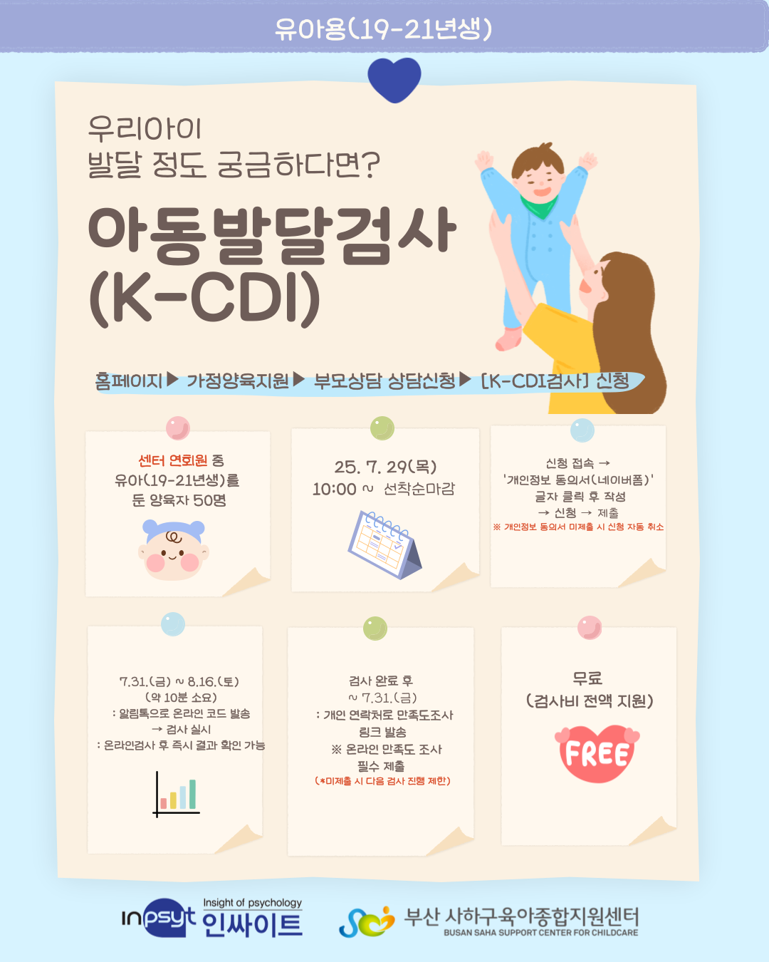 [사하구육아종합지원센터] 아동발달검사(K-CDI) & 부모양육태도검사(PAT-2) 신청하세요!