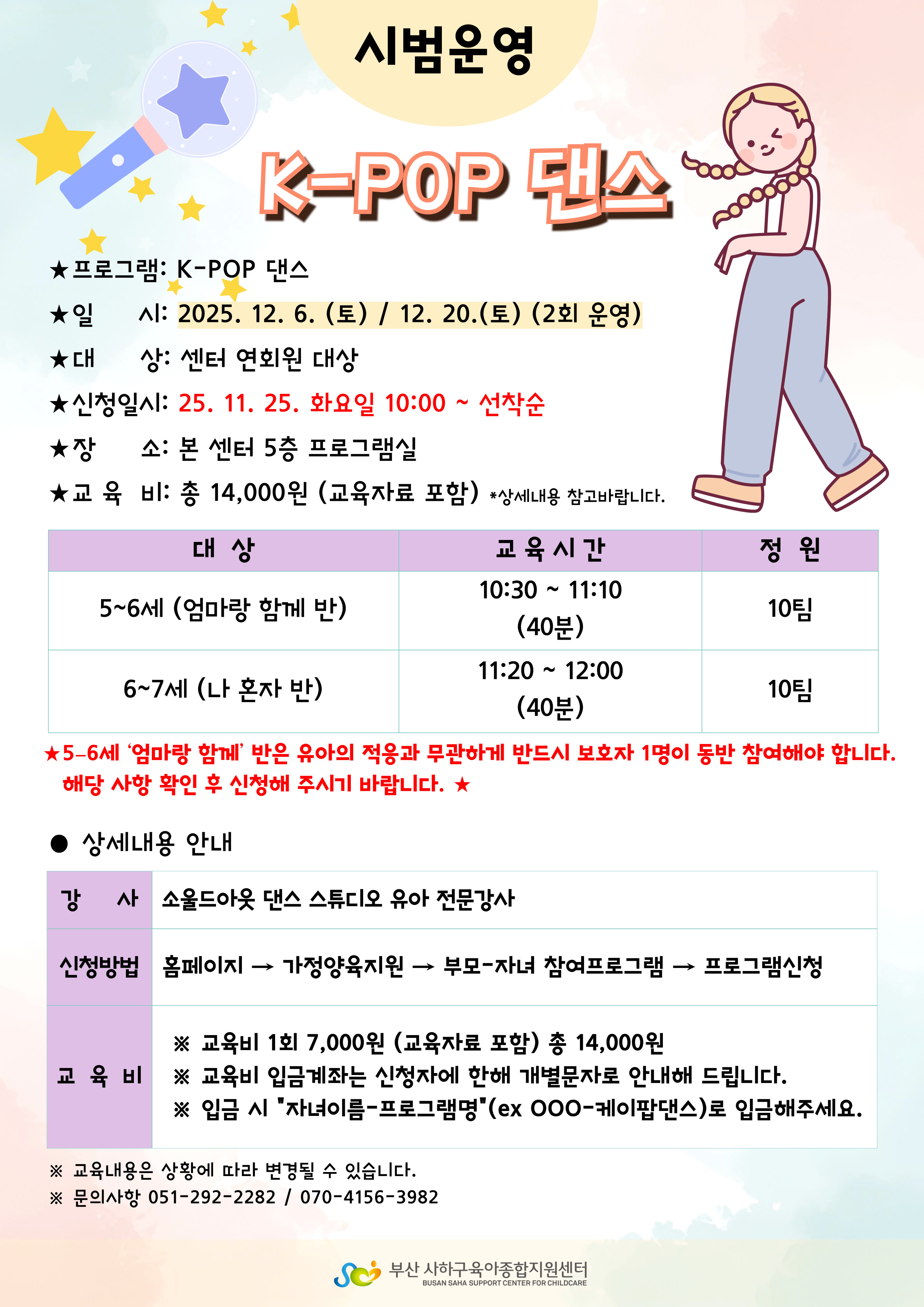 사하구육아종합지원센터 K-POP 댄스 프로그램 OPEN!!!