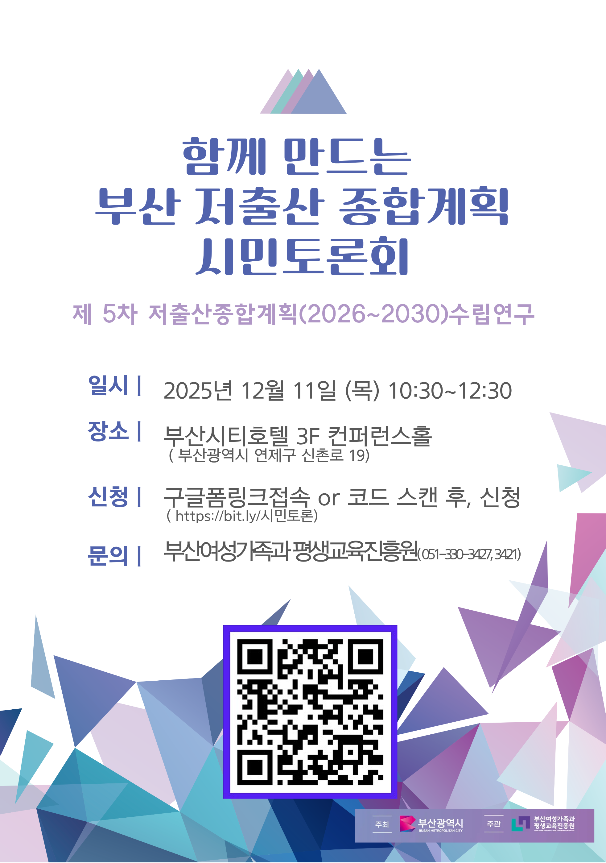 [부산여성가족과 평생교육진흥원] 함께 만드는 부산 저출산 종합계획 시민토론회 참여안내