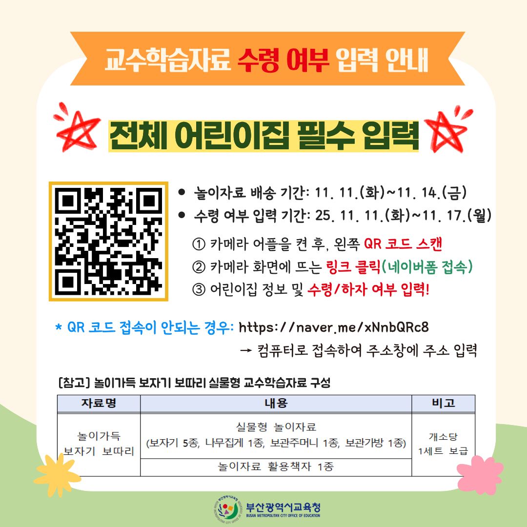 [부산광역시교육청] 놀이가득 보자기 보따리 교수학습자료 배부 안내