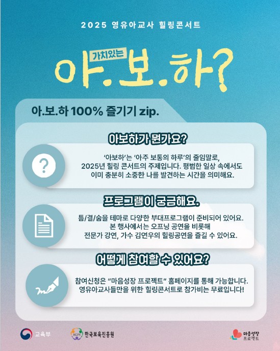 [한국보육진흥원] 2025년 영유아교사 힐링콘서트 가치 있는 아.보.하 안내