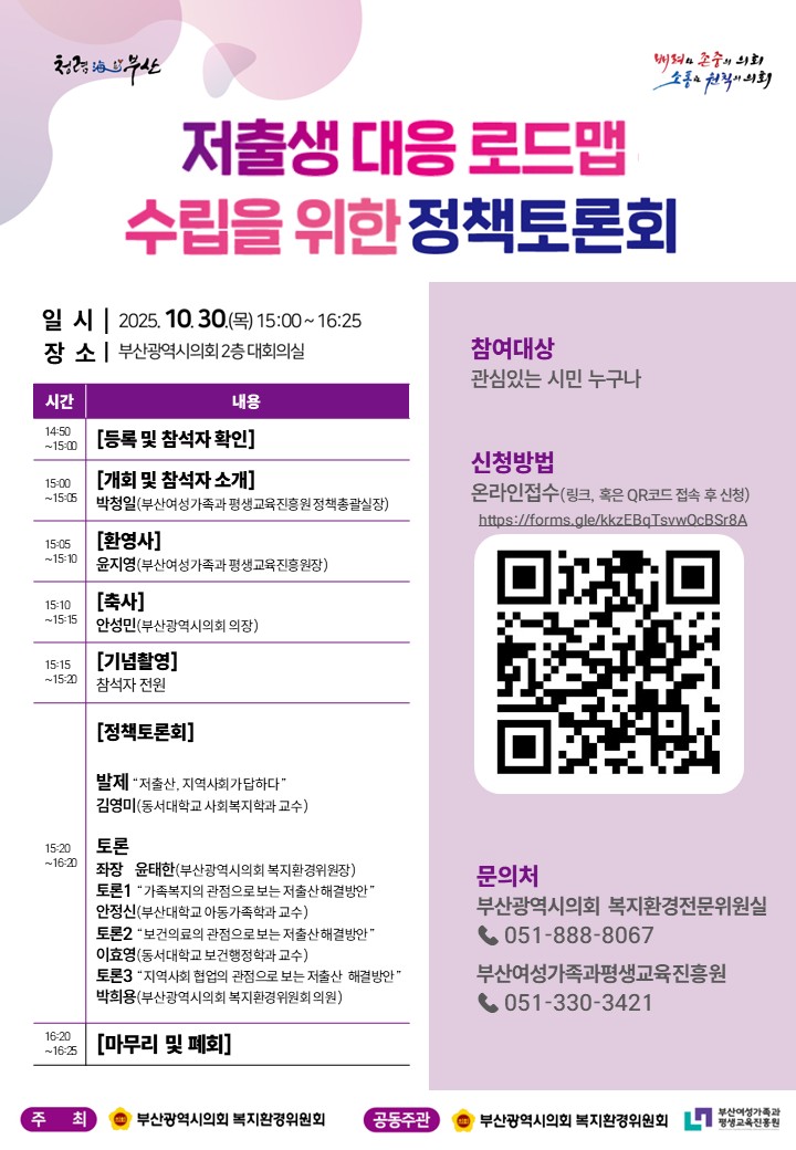[부산여성가족과평생교육진흥원] 저출산대응 로드맵 수립을 위한 정책토론회 안내