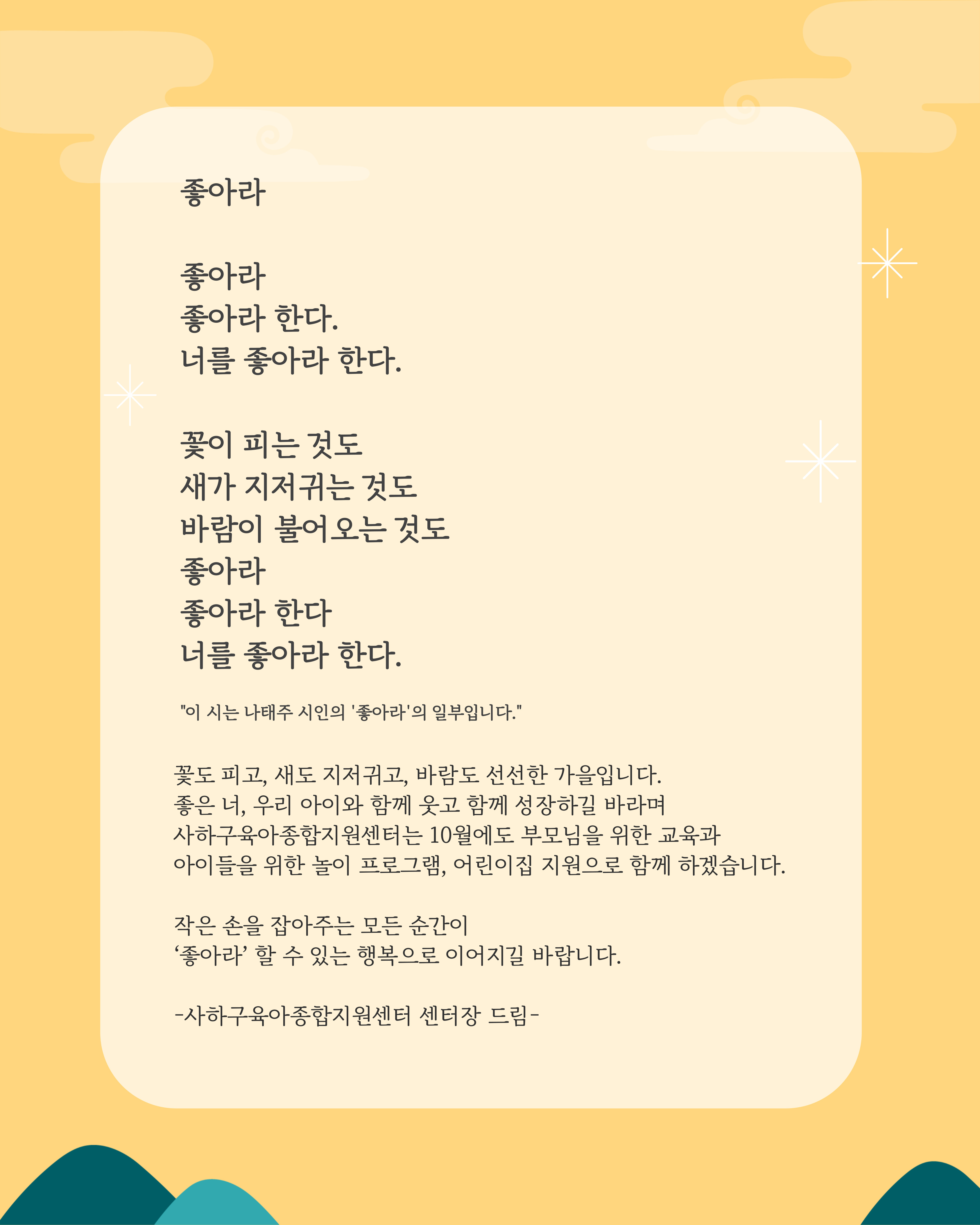 가을 햇살처럼 포근한 프로그램과 이야기로