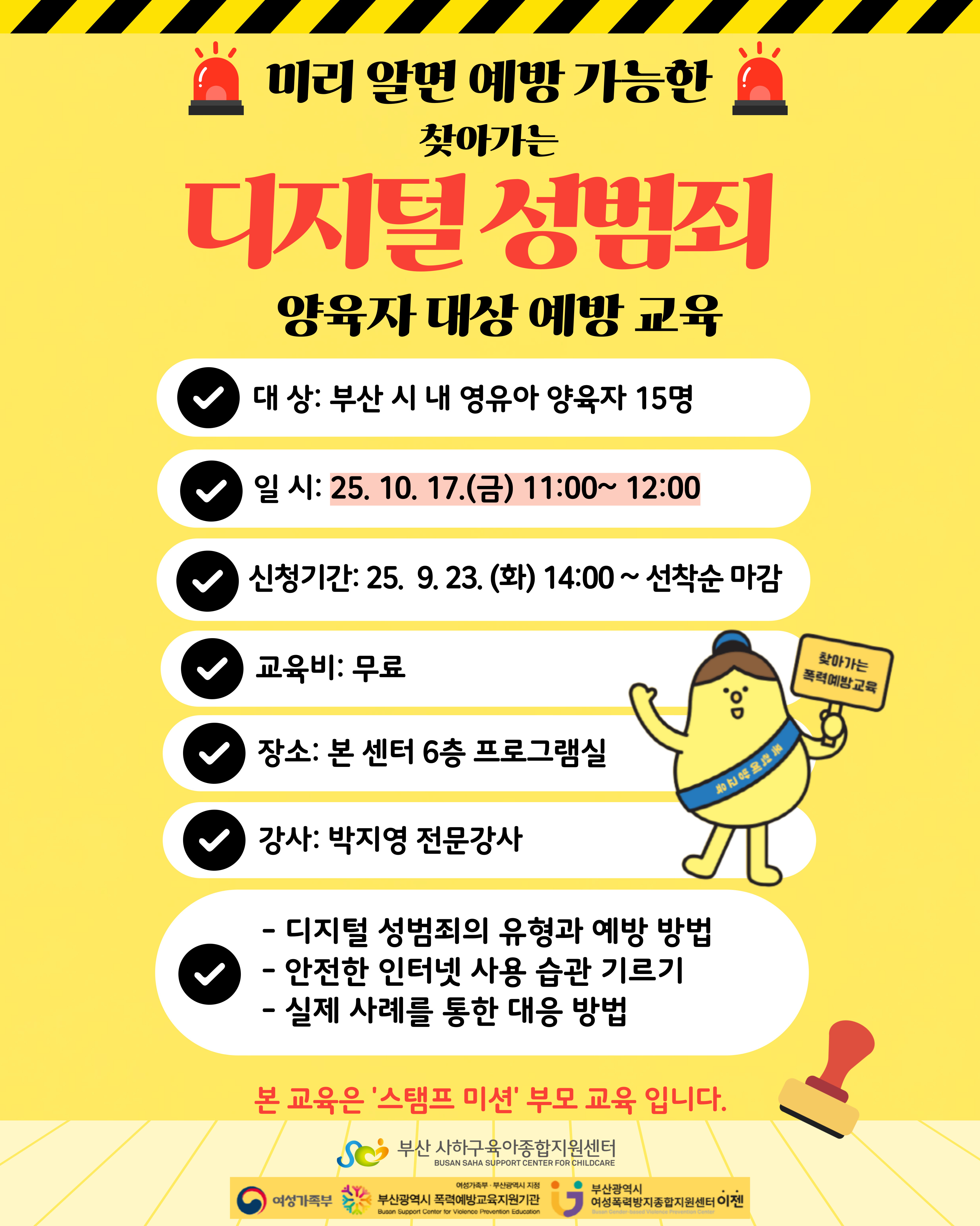 [사하구육아종합지원센터] 미리 알면 예방 가능한 찾아가는 디지털 성범죄 양육자 대상 예방 교육