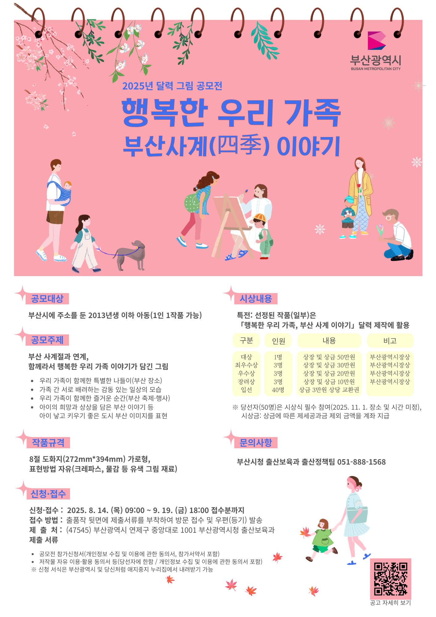 [부산광역시] 2025 달력 그림 공모전 “행복한 우리 가족, 부산사계(四季) 이야기”