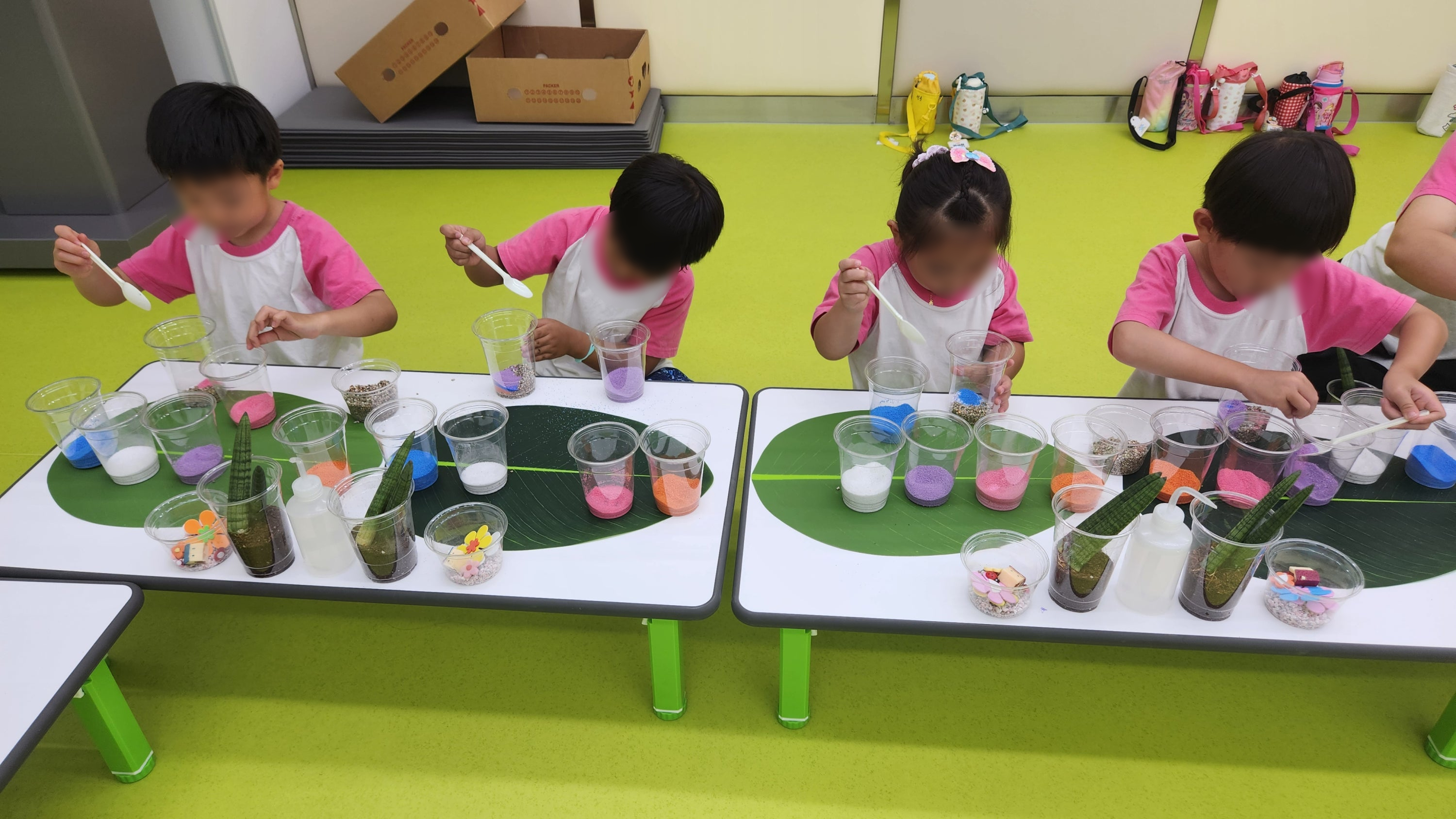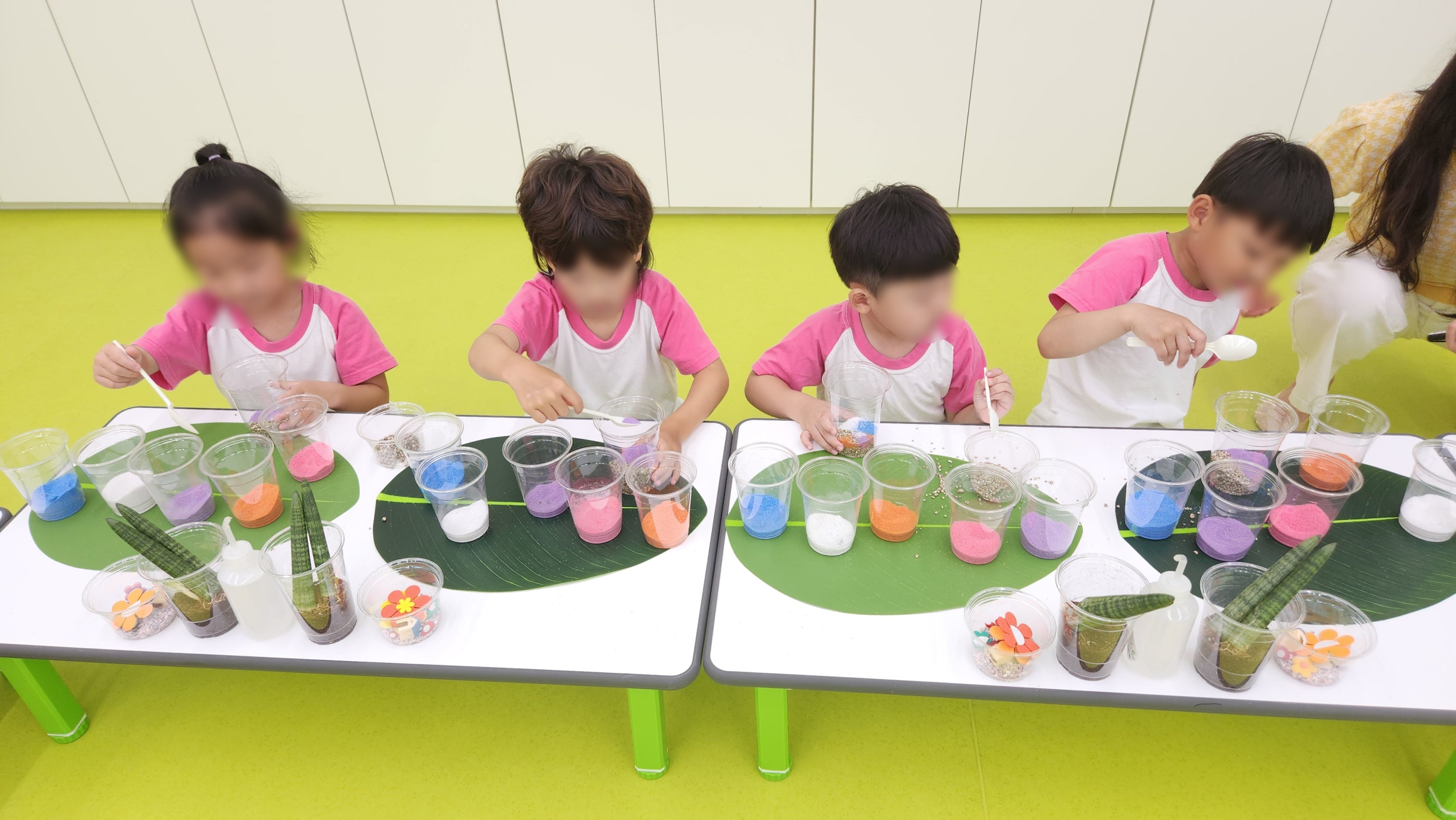 아이들이 직접 돌보고 가꾼 식물들이 예쁘게 자라길 기다려요