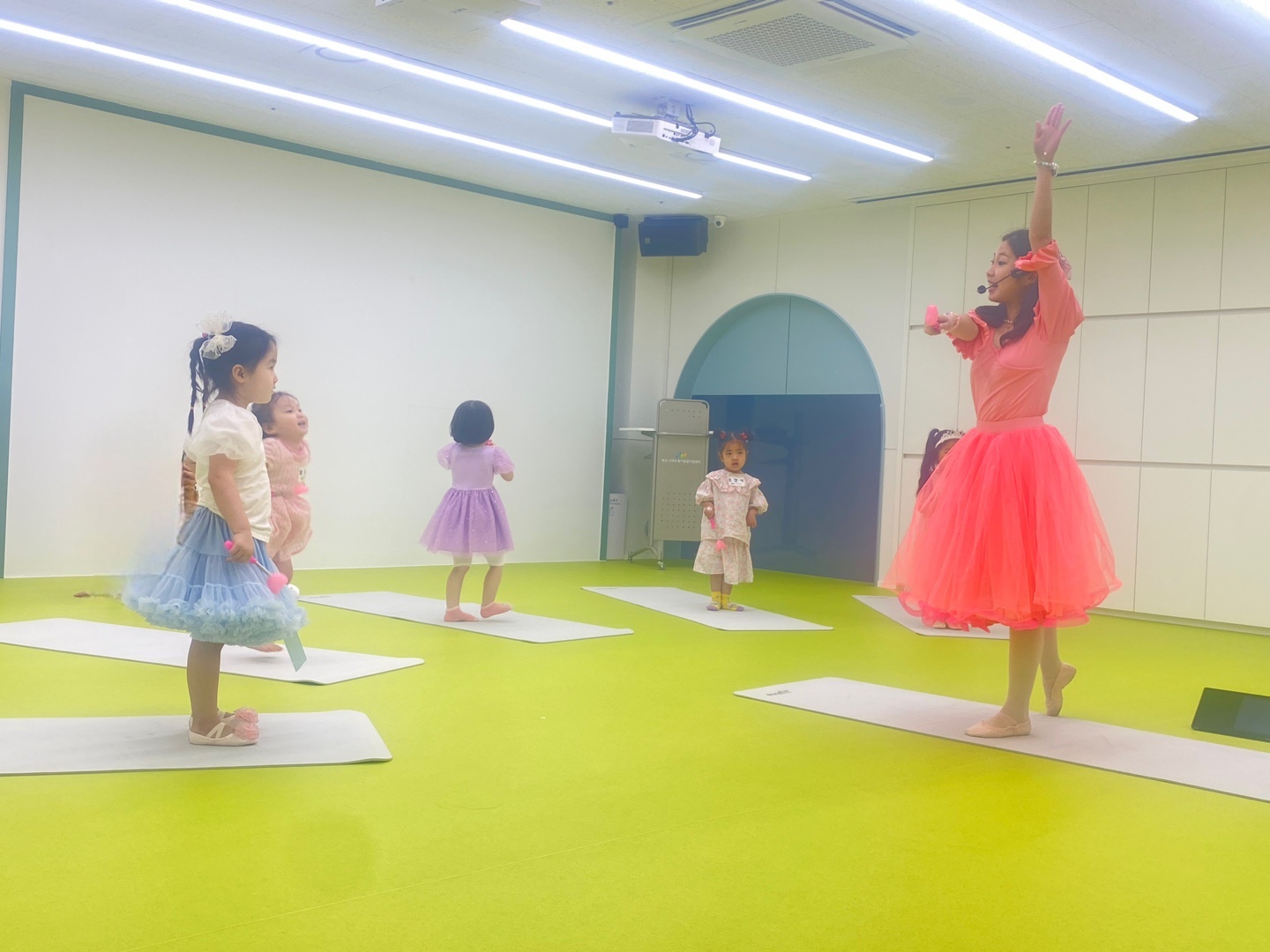 좋아하는 샤랄라 옷을 입고 발레 동작을 배워보았어요