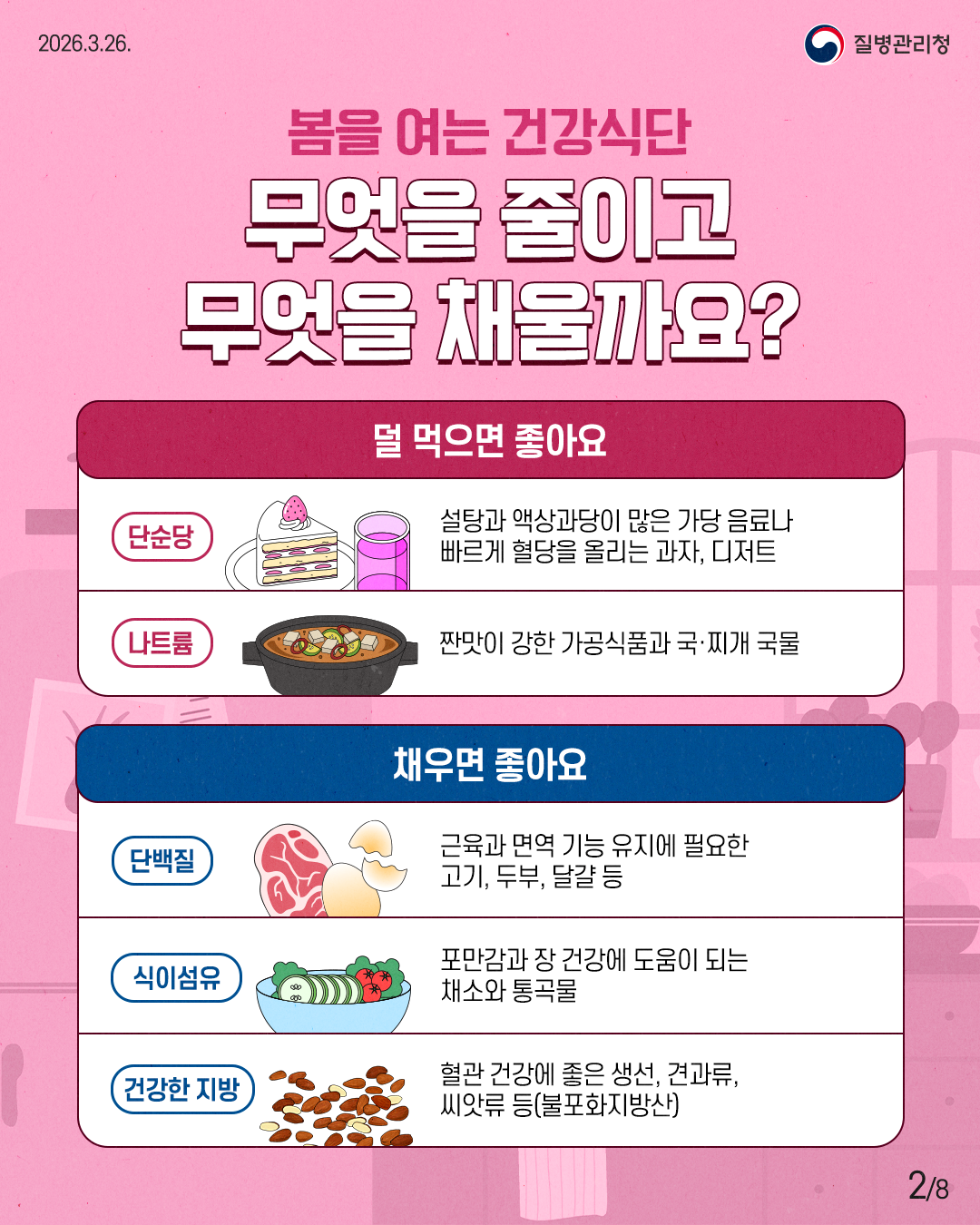 [양육정보] [질병관리청] 다가오는 봄, 기운이 떨어진다면? 균형 있게 섭취하자!