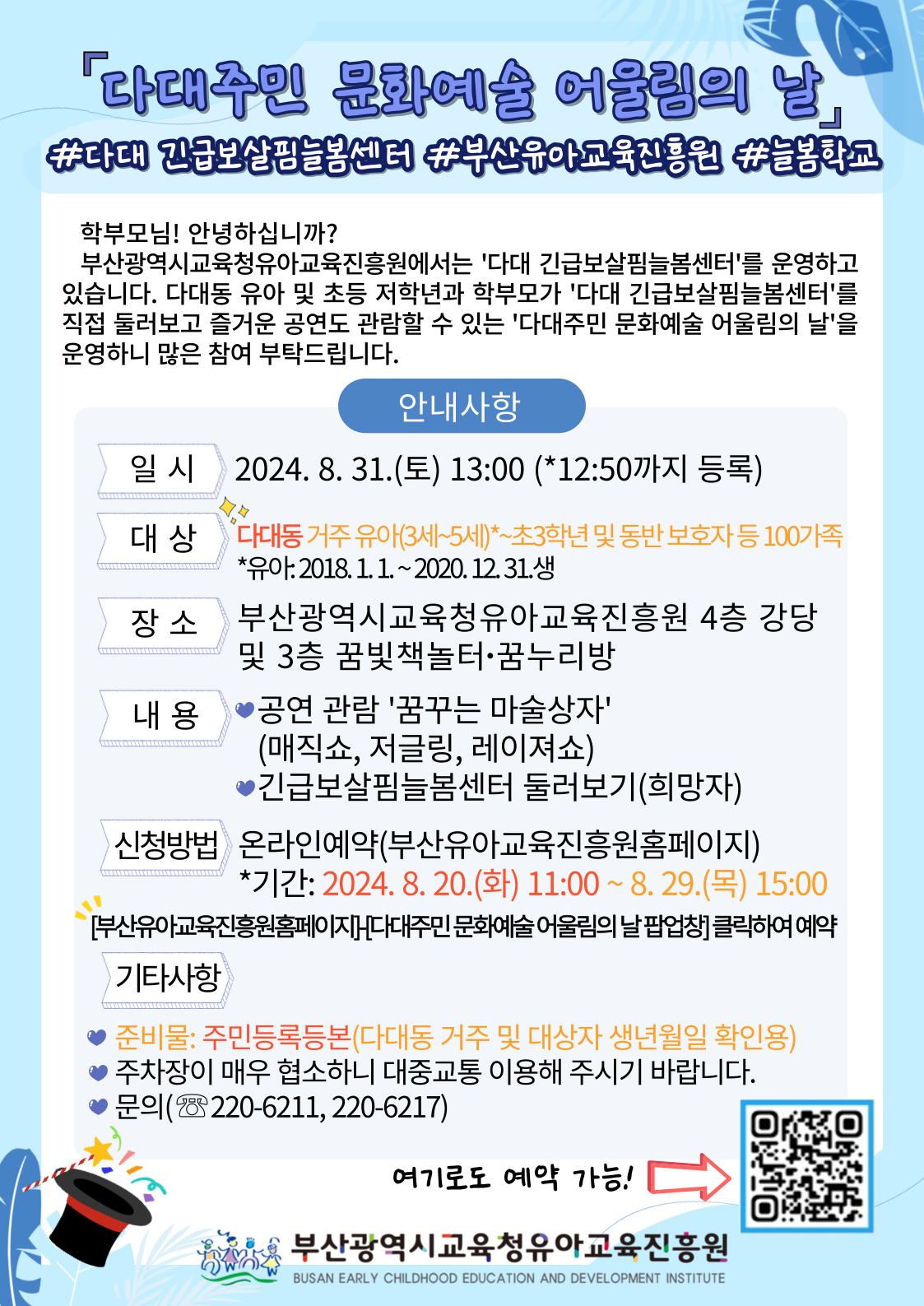 [보육정보] [유아교육진흥원] 『다대주민 문화예술 어울림의 날』 운영 계획